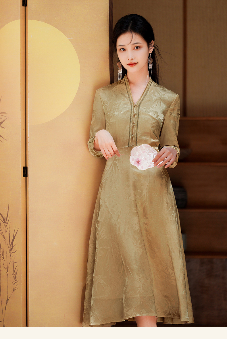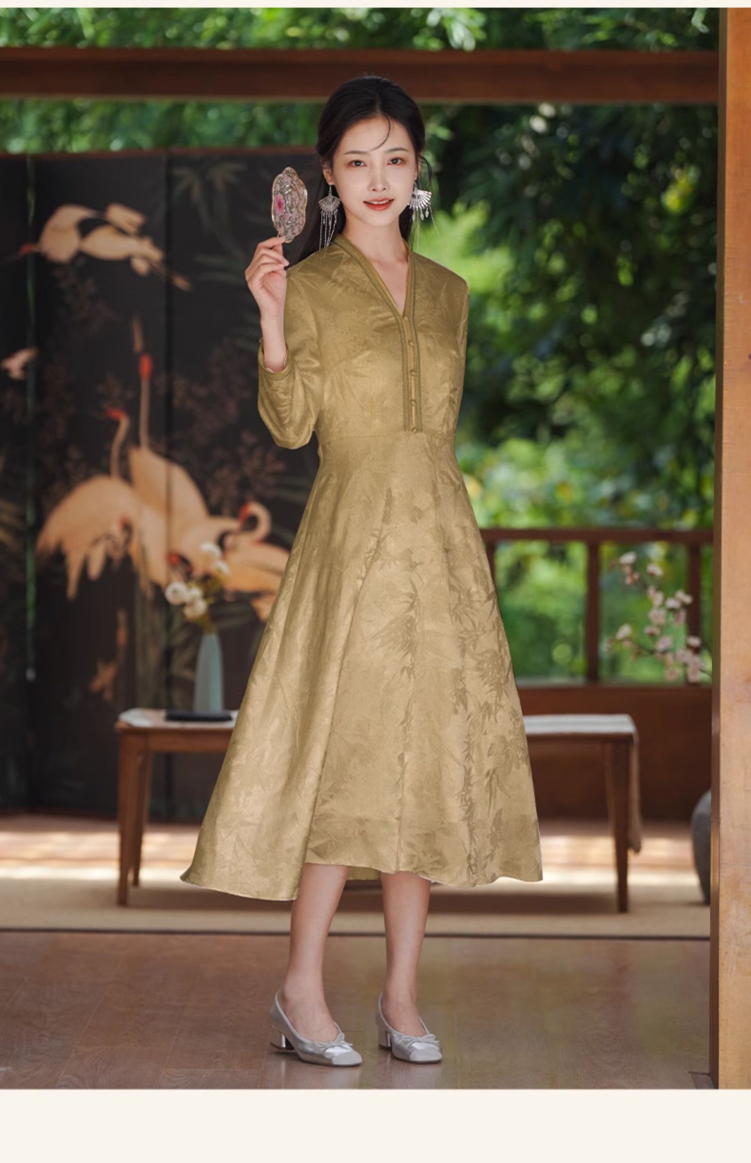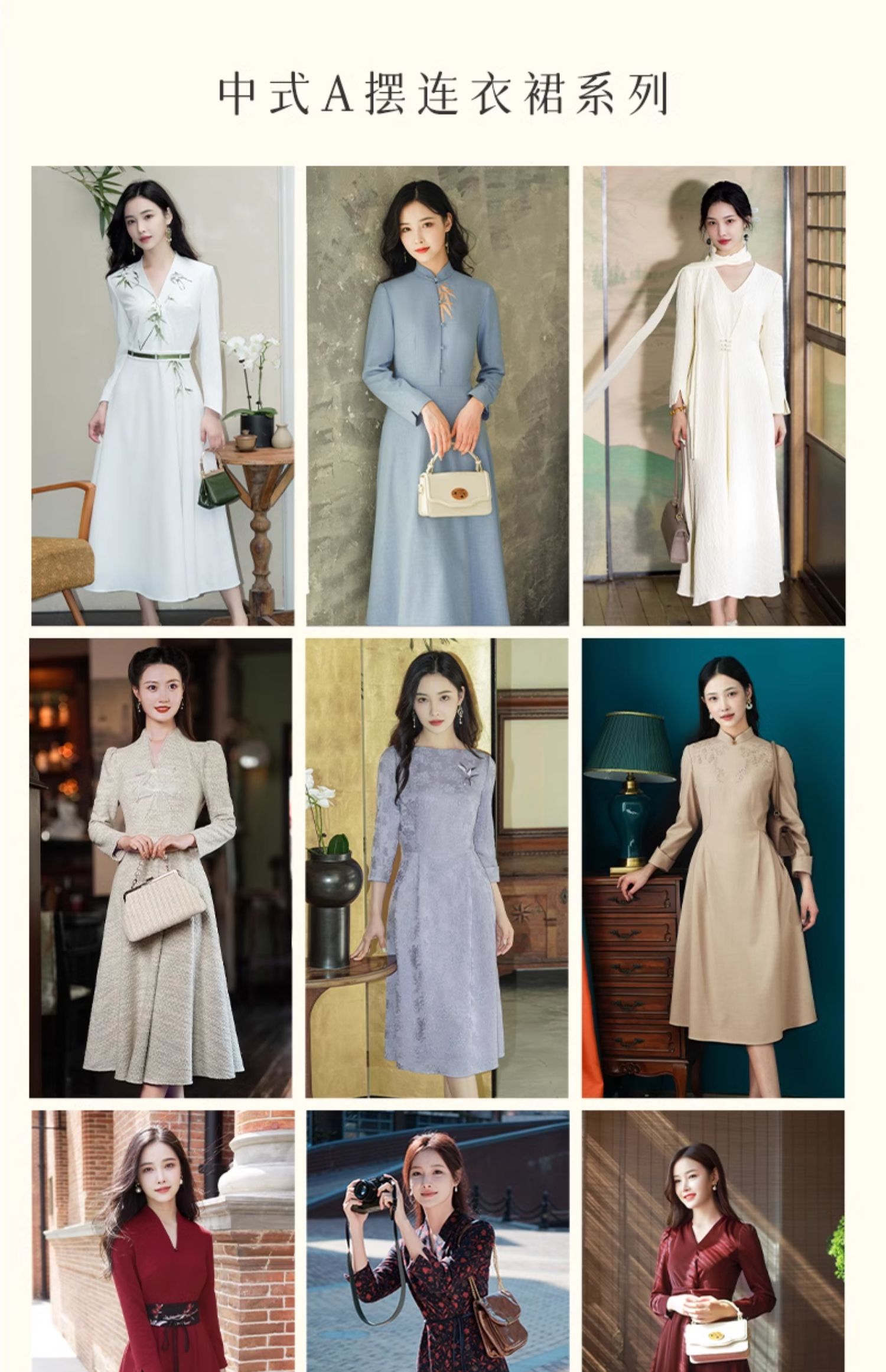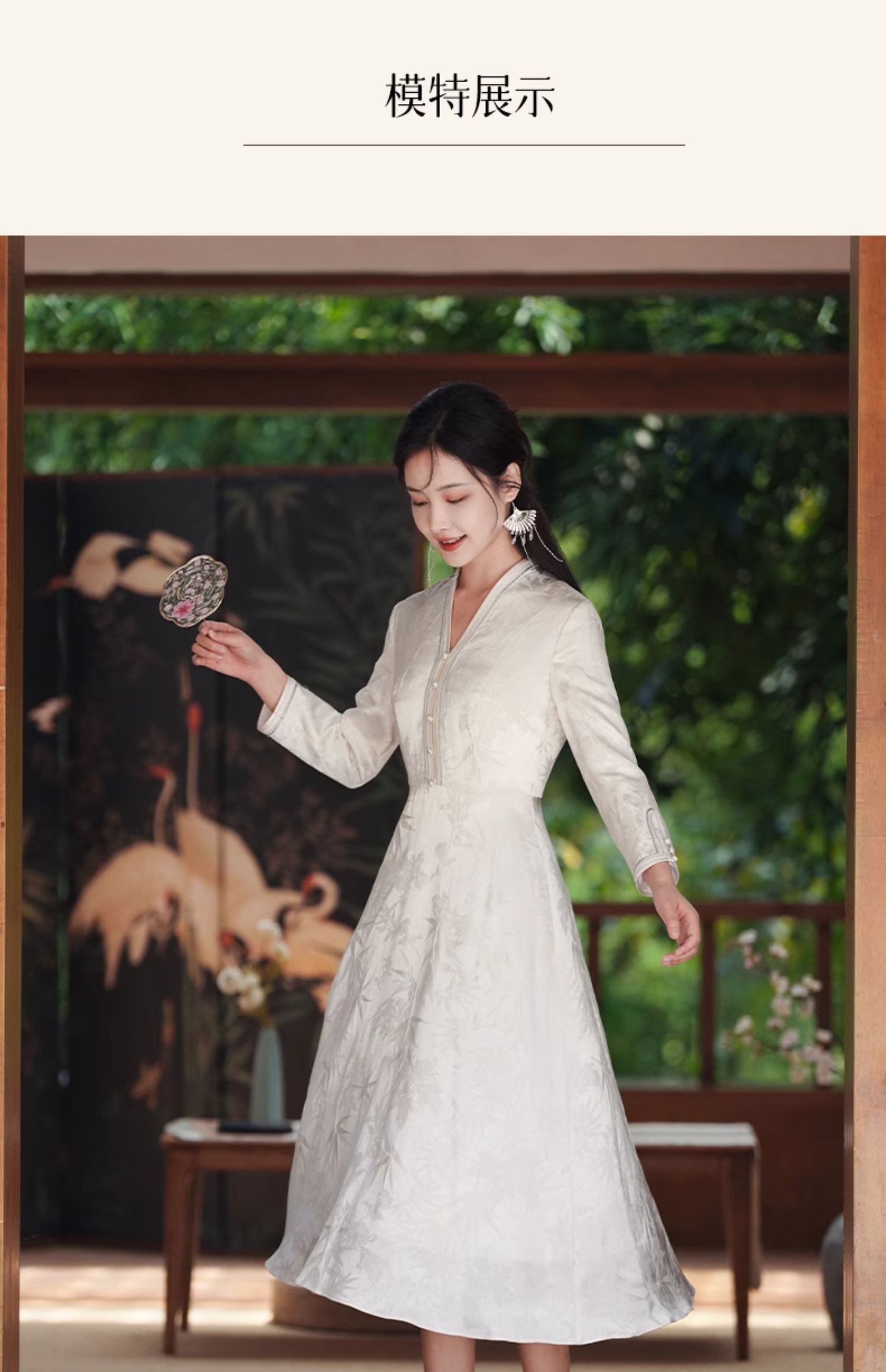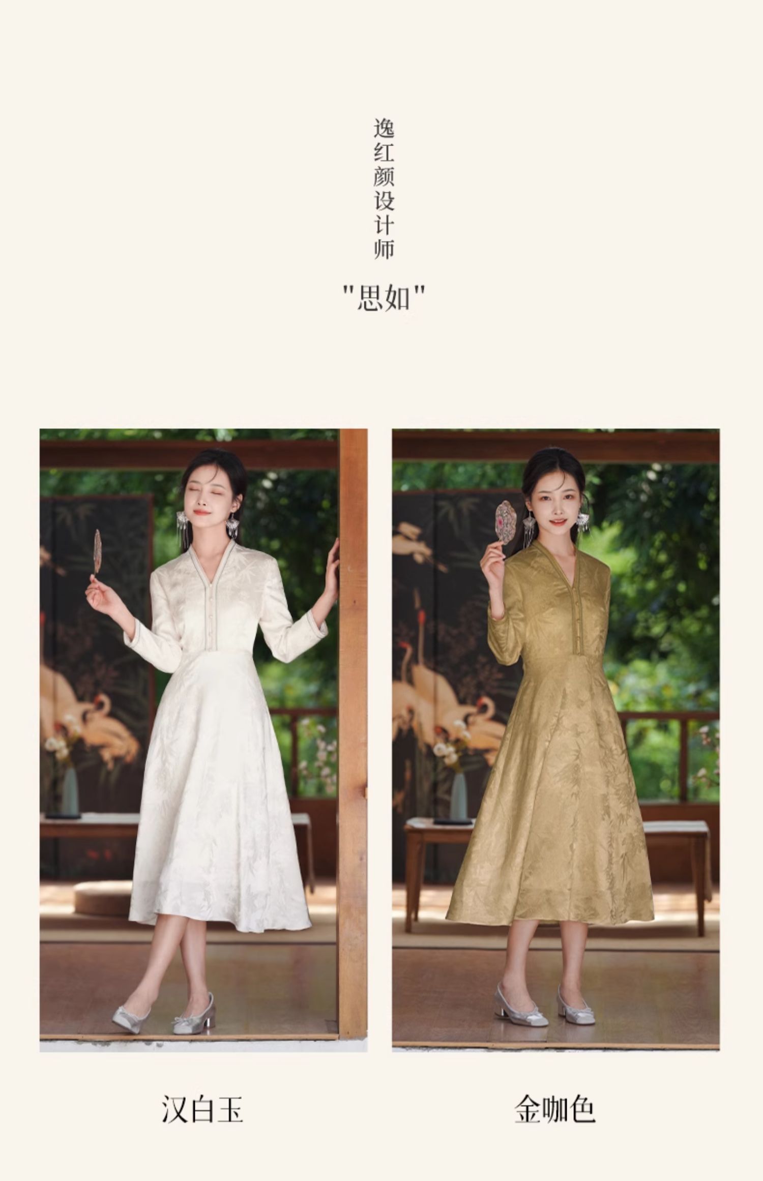 上海逸红颜兰莹2025早秋高级感新中式轻国风气质连衣裙长袖礼服裙