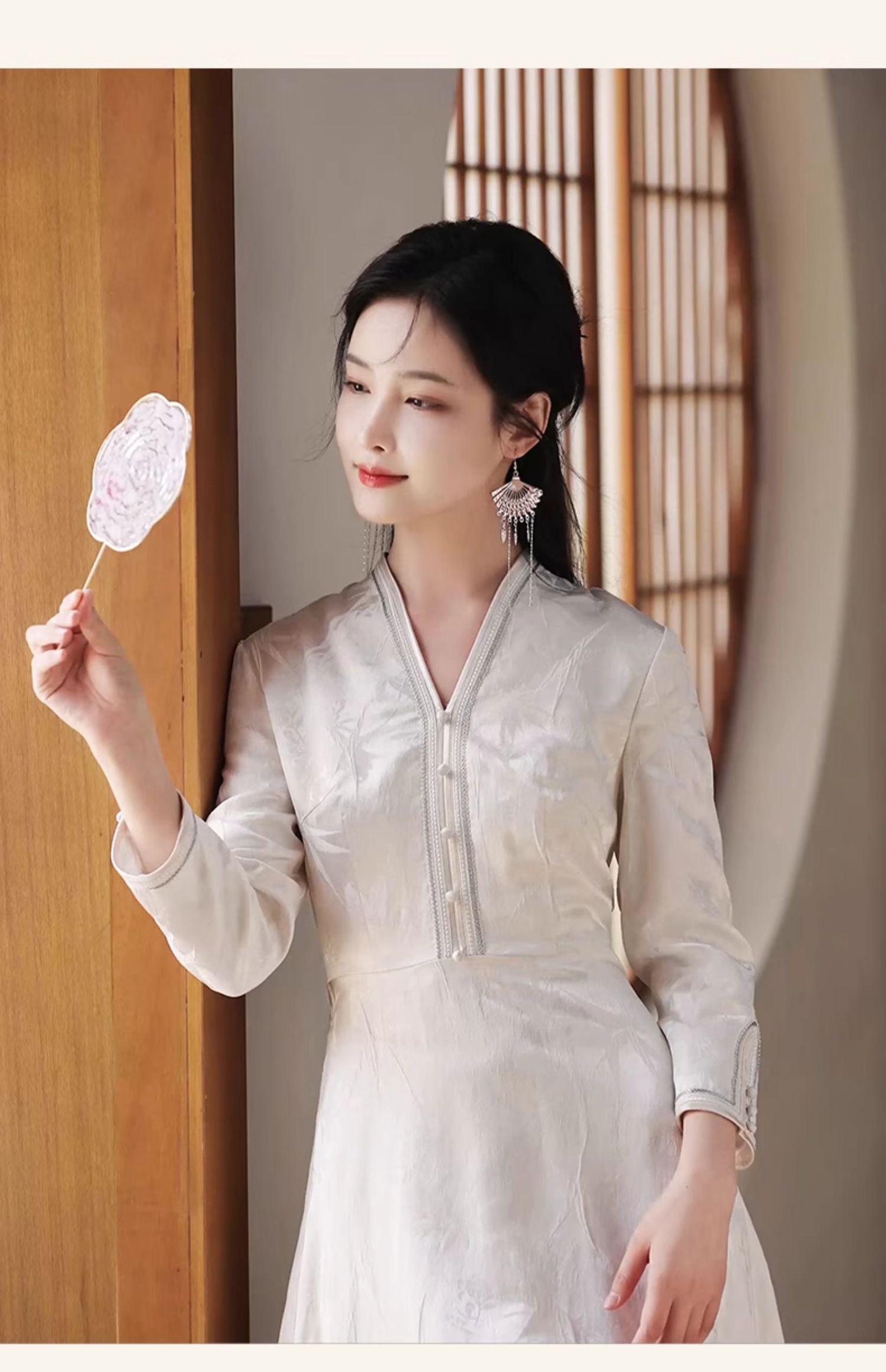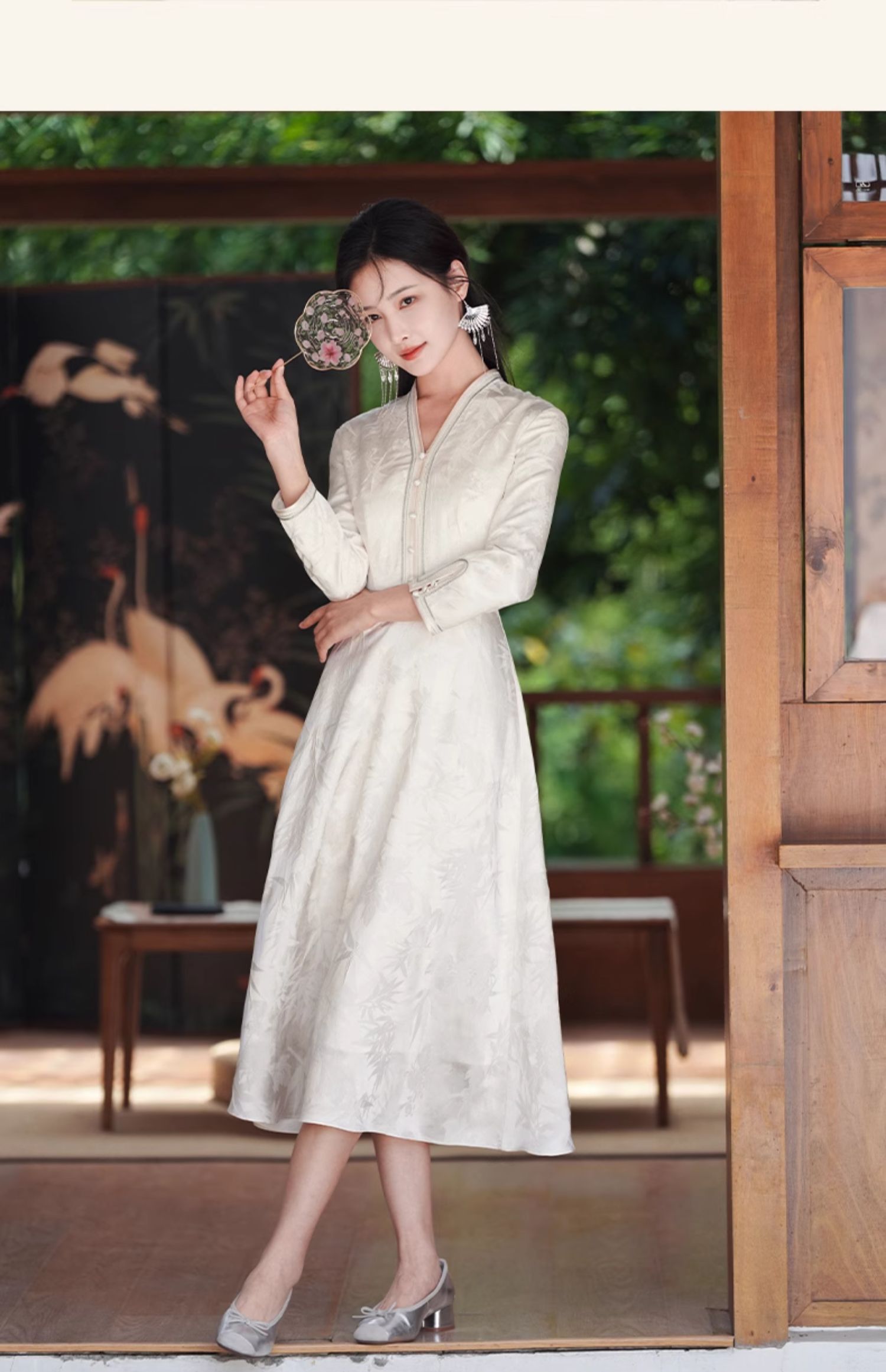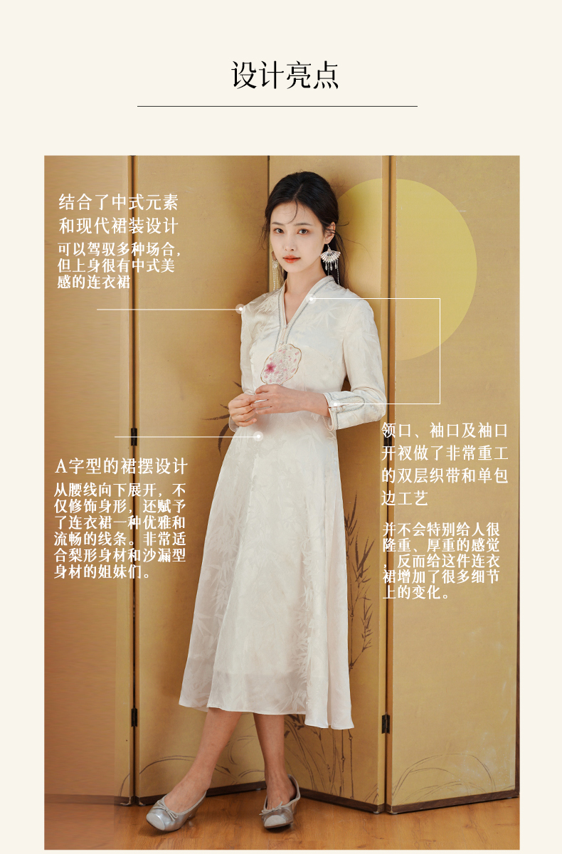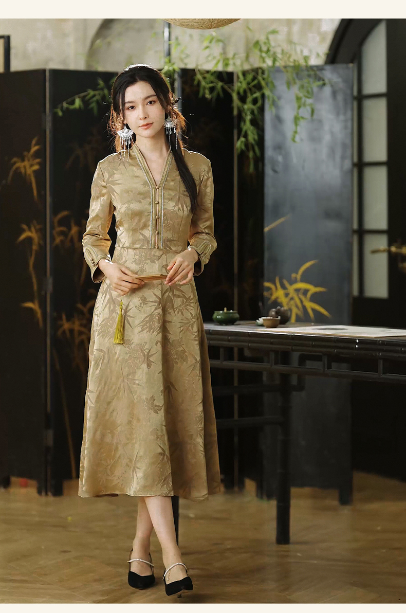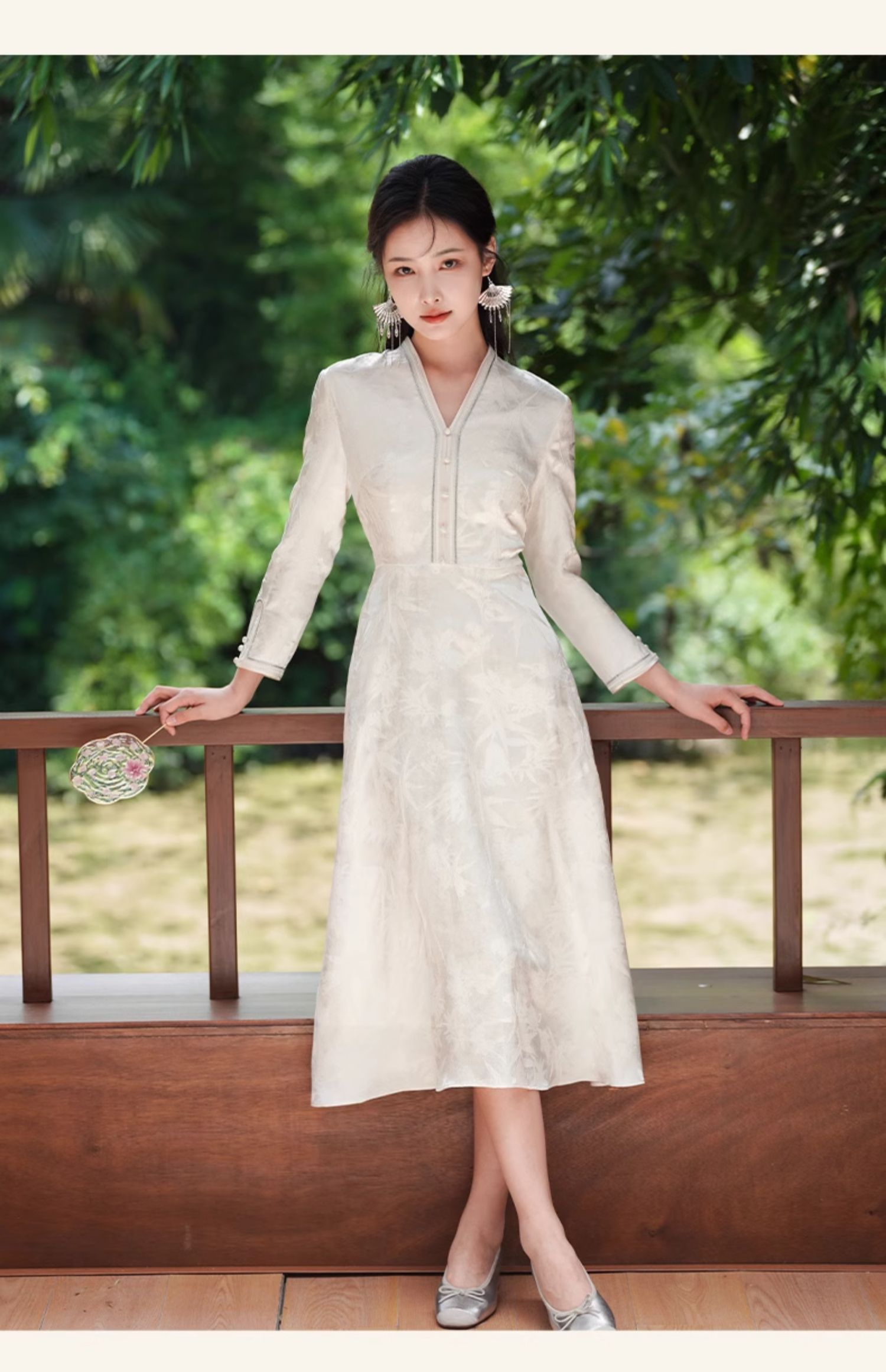 上海逸红颜兰莹2025早秋高级感新中式轻国风气质连衣裙长袖礼服裙