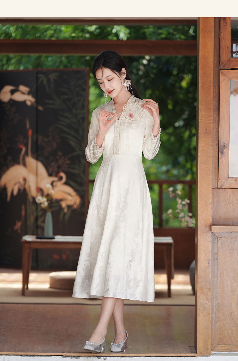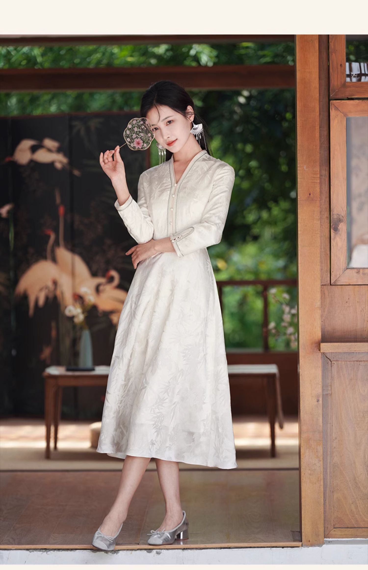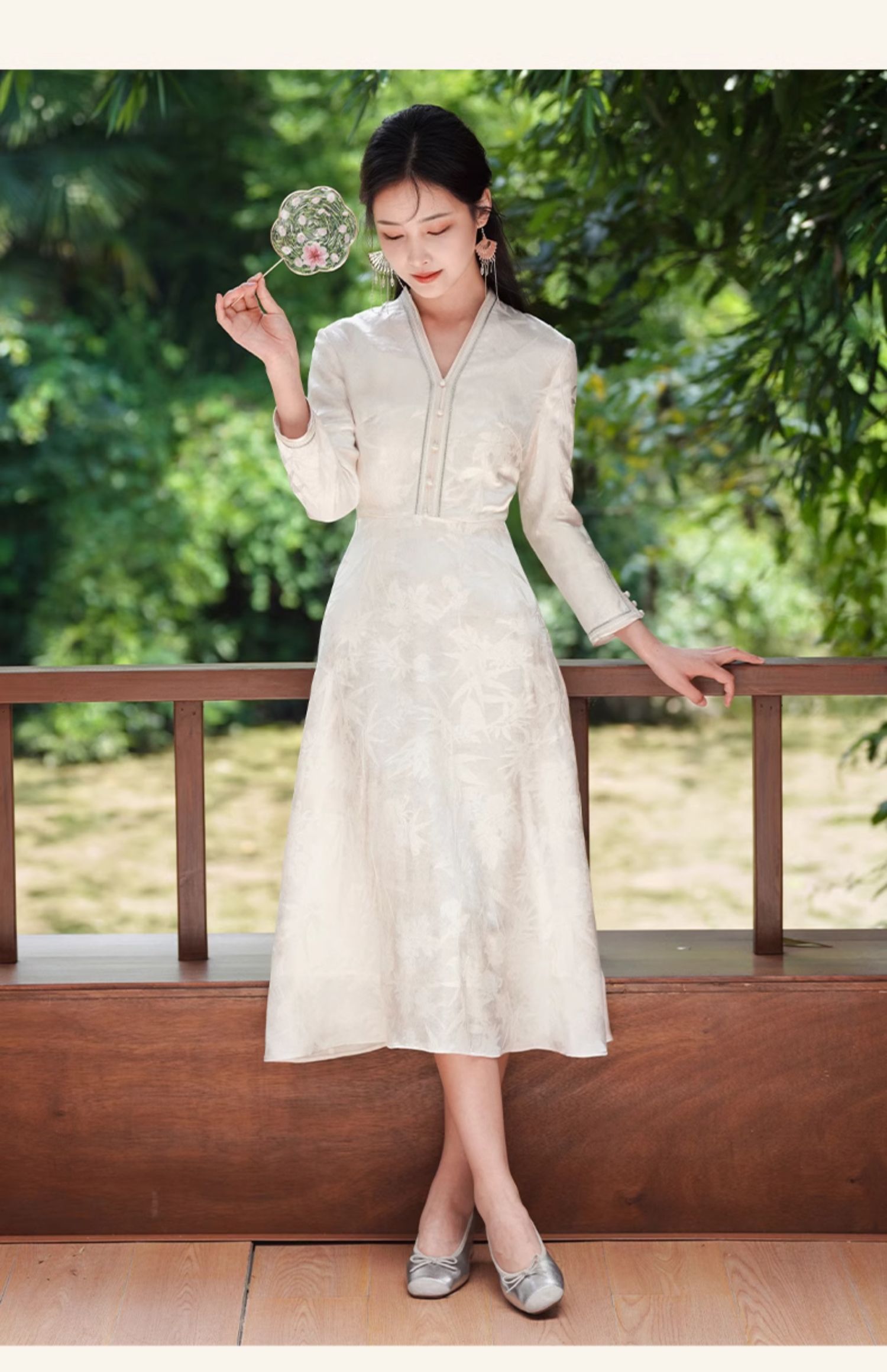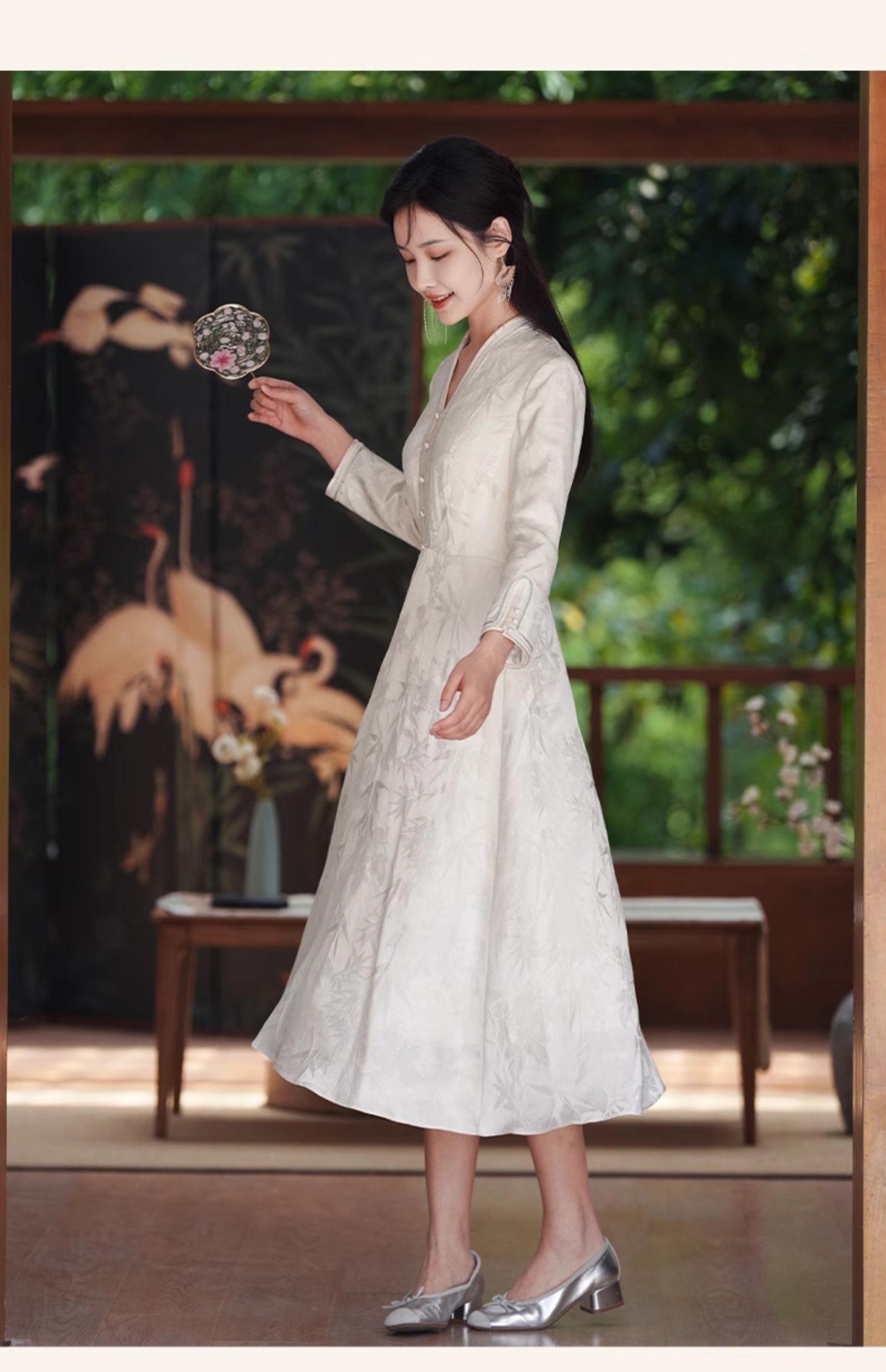 上海逸红颜兰莹2025早秋高级感新中式轻国风气质连衣裙长袖礼服裙