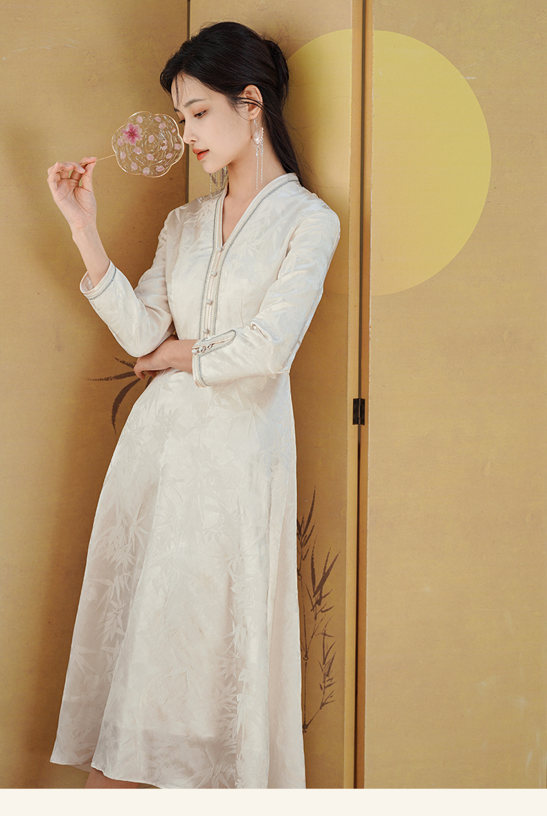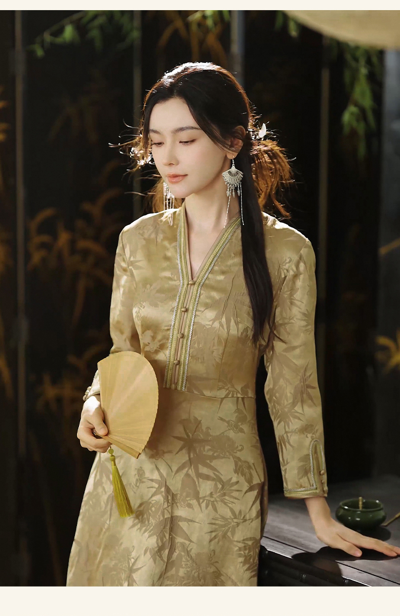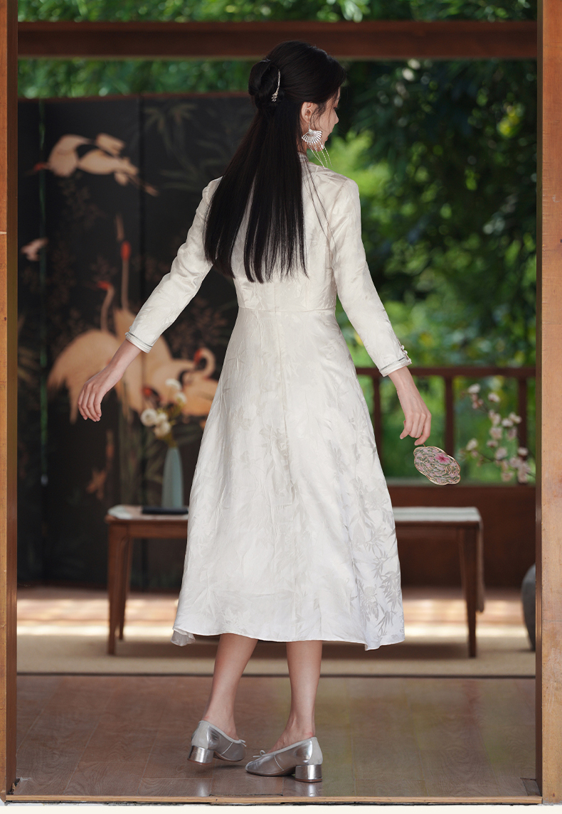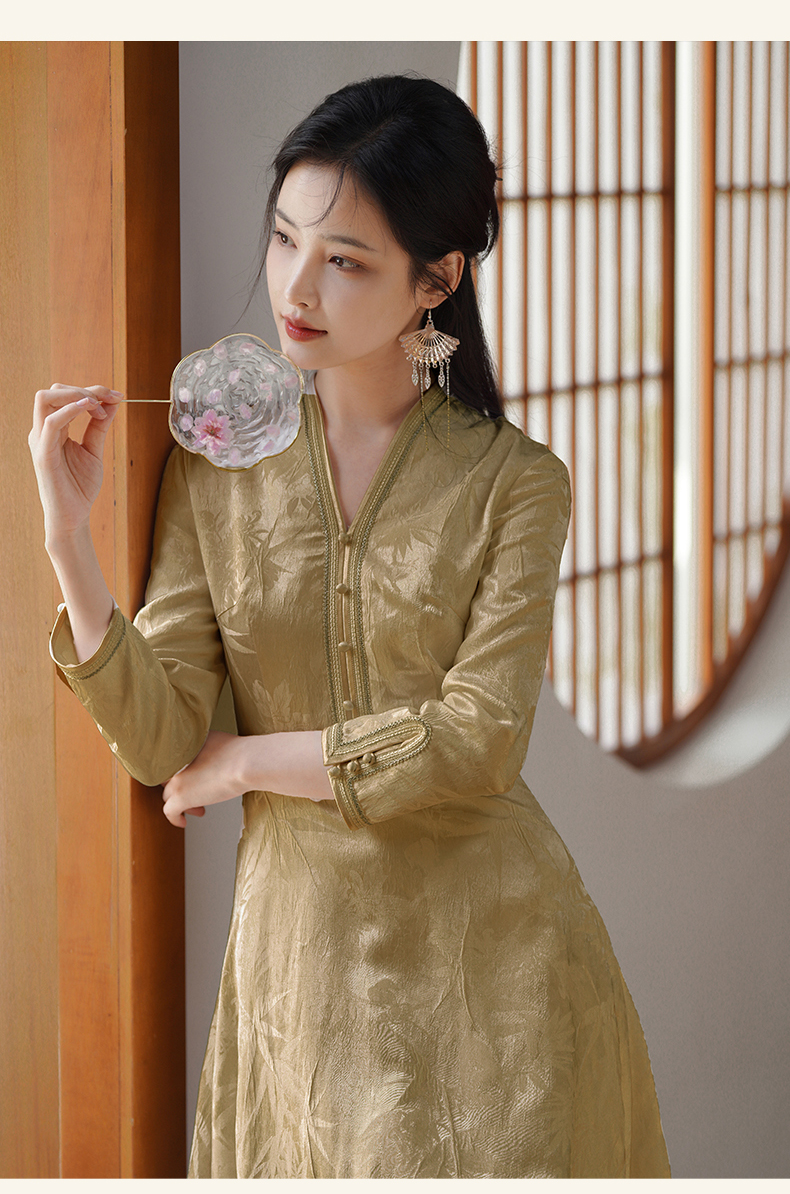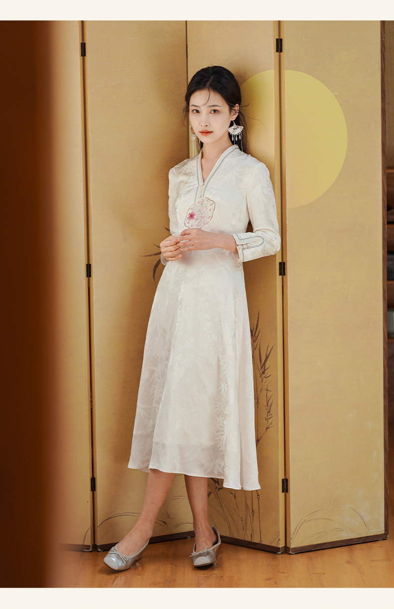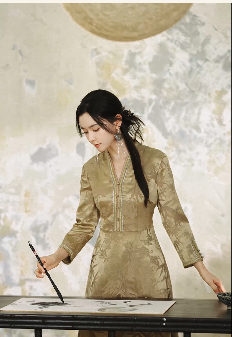 上海逸红颜兰莹2025早秋高级感新中式轻国风气质连衣裙长袖礼服裙