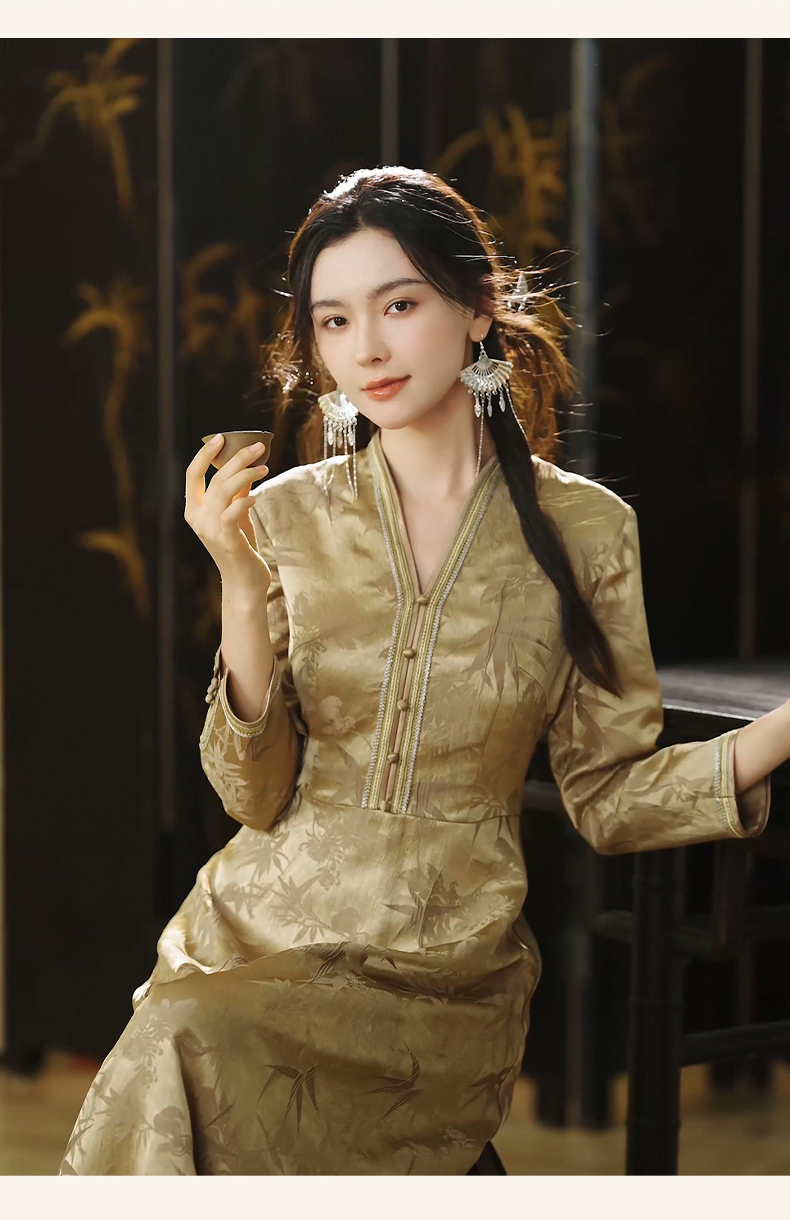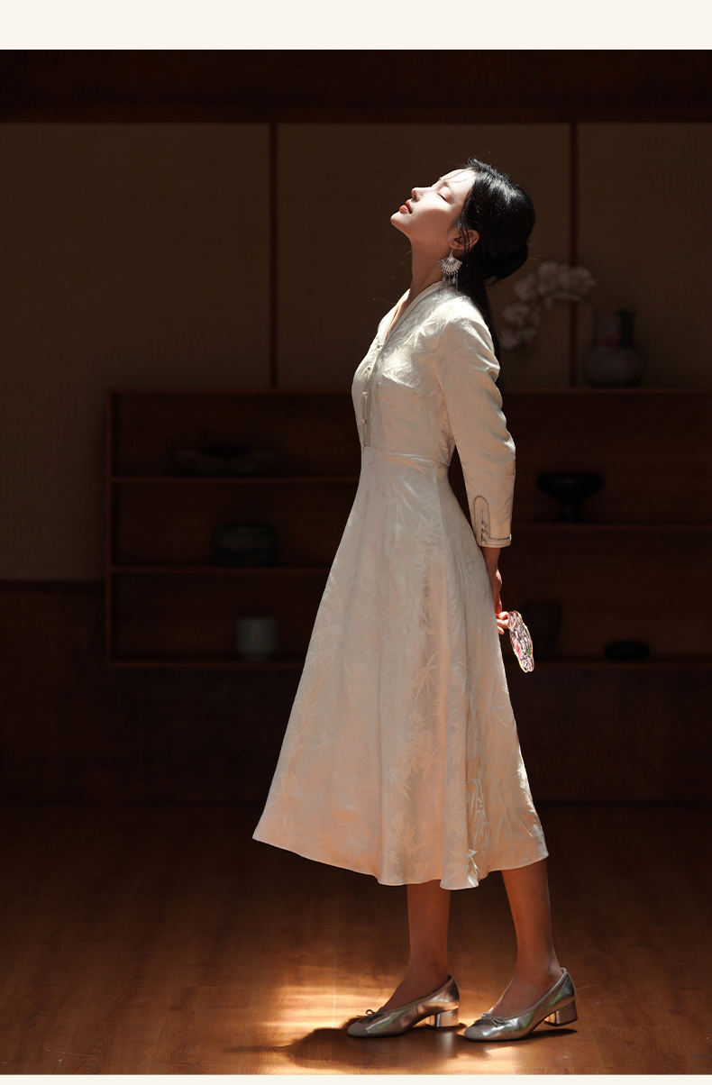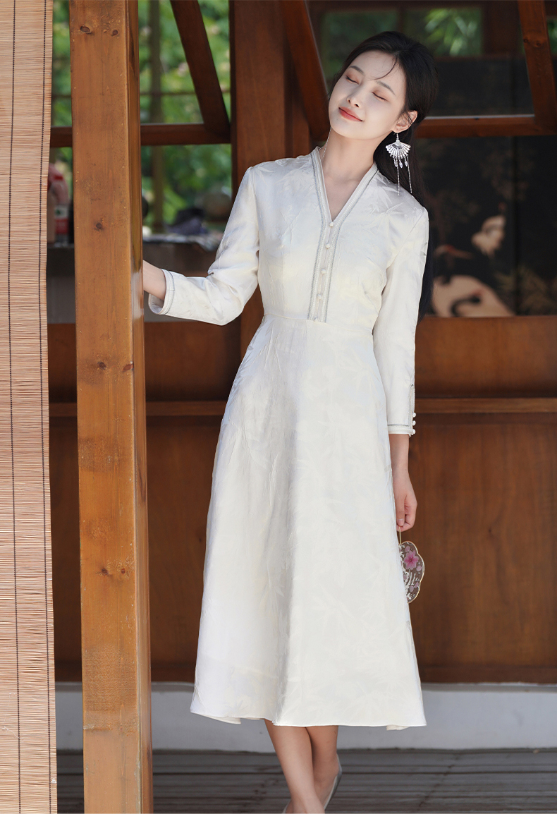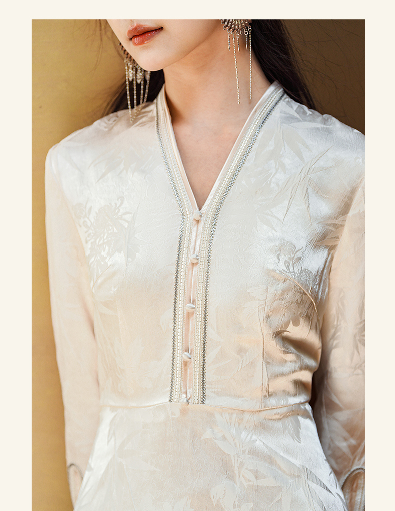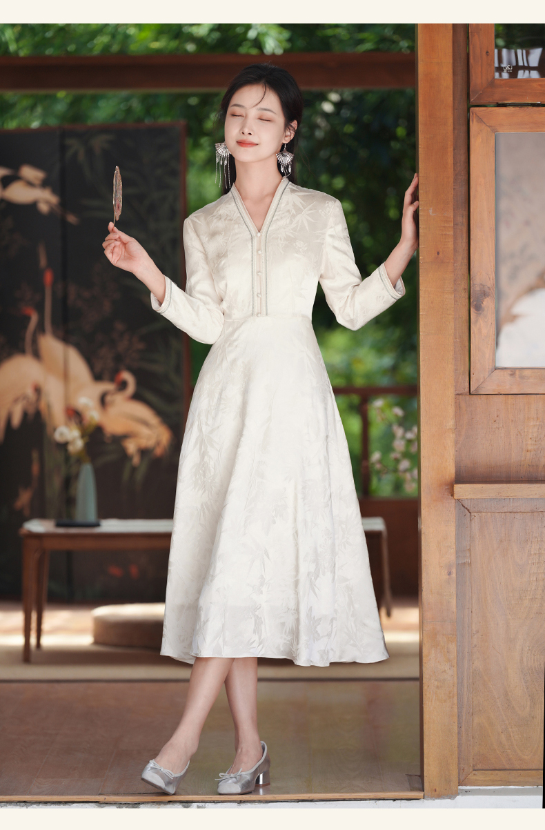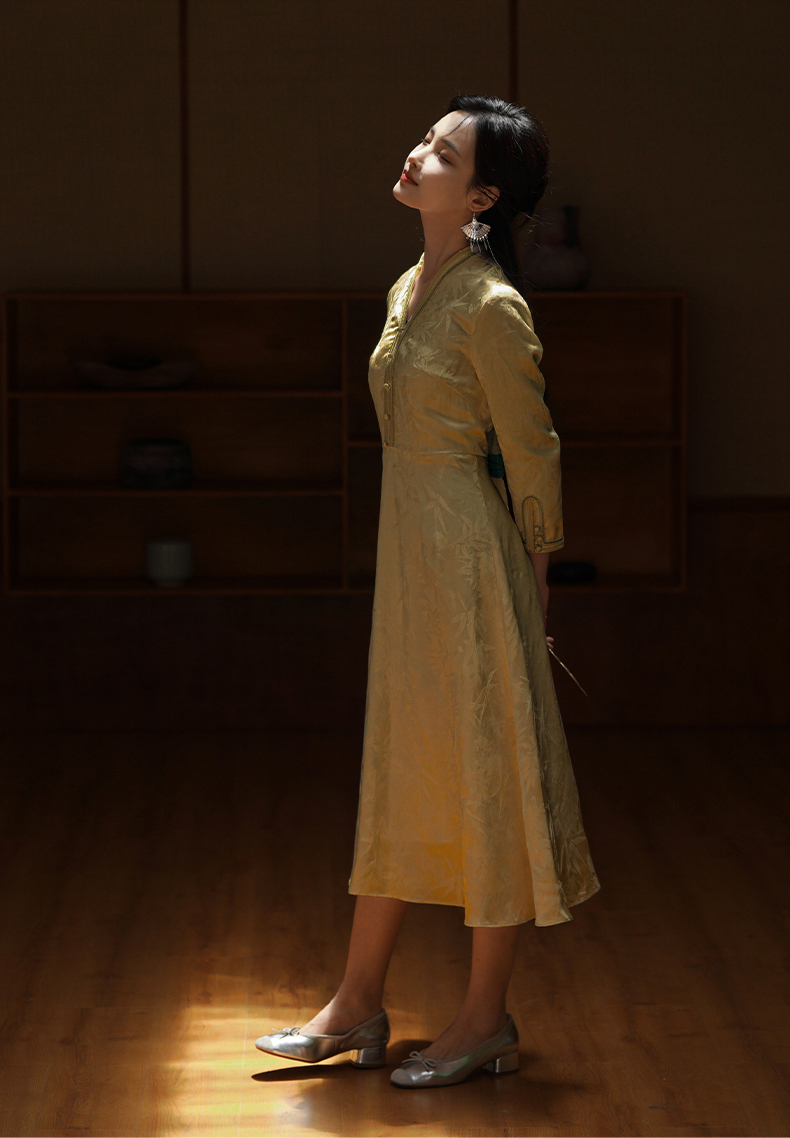上海逸红颜兰莹2025早秋高级感新中式轻国风气质连衣裙长袖礼服裙