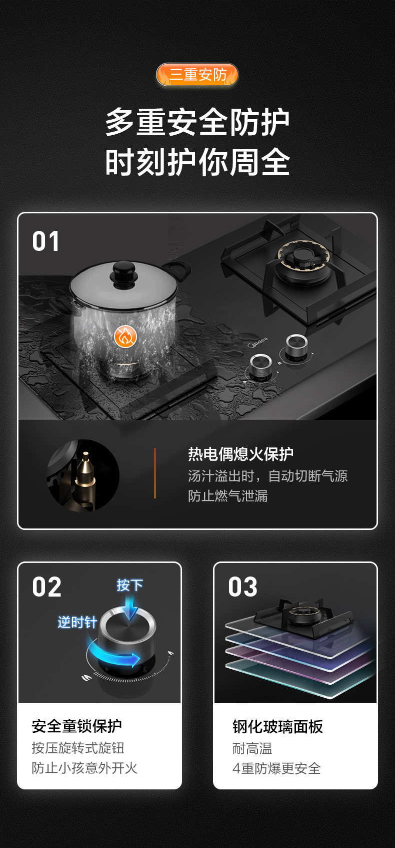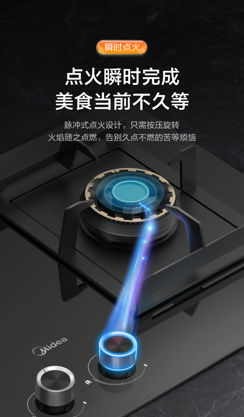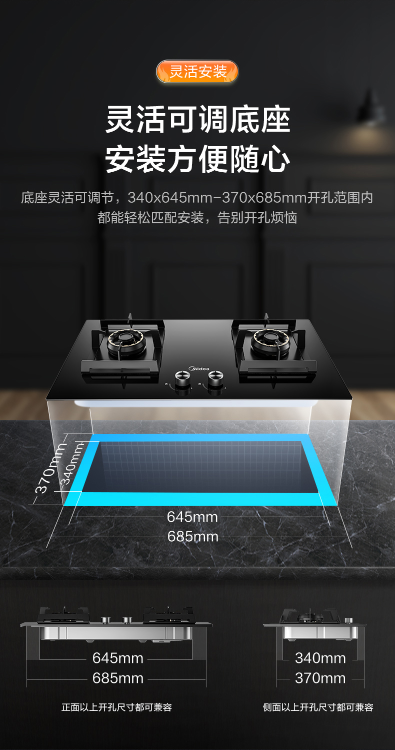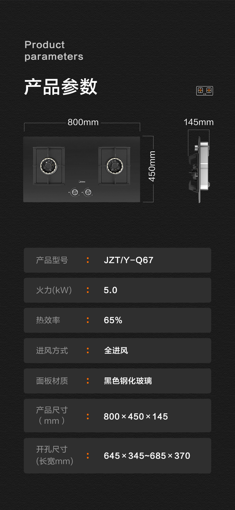 美的(Midea)商场同款燃气灶双灶家用5.0KW大火力800mm黑晶宽面板 台嵌两用 65%高热效率 JZT-Q67 天然气