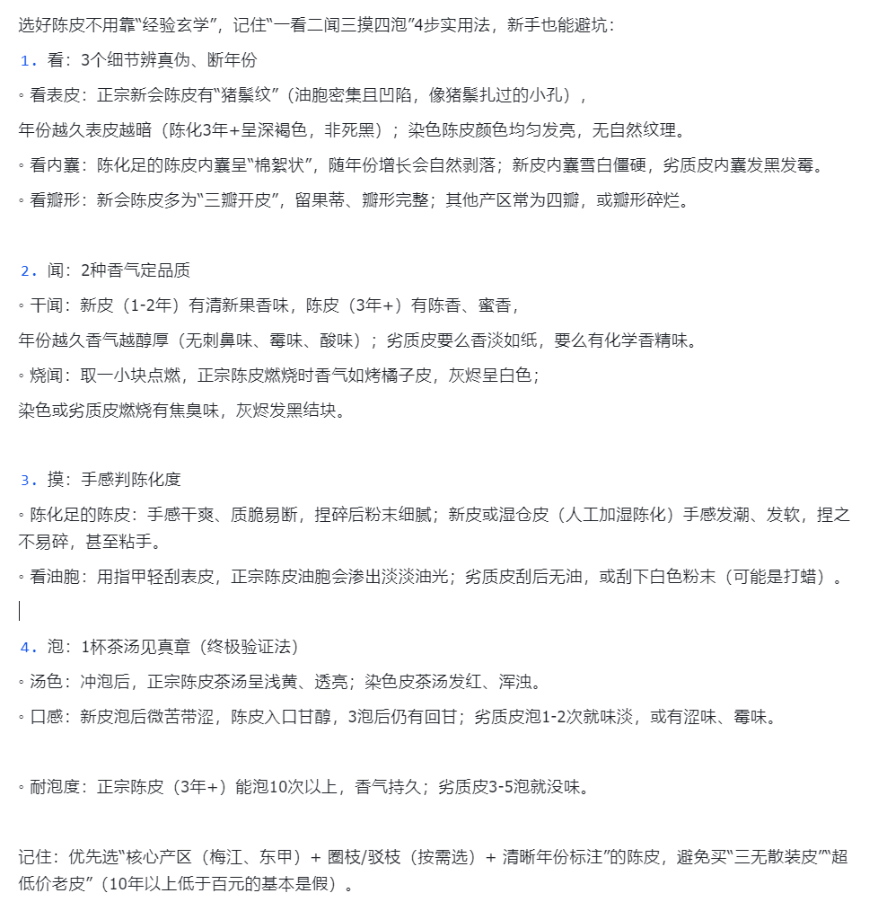 以下为陈皮挑选小贴士