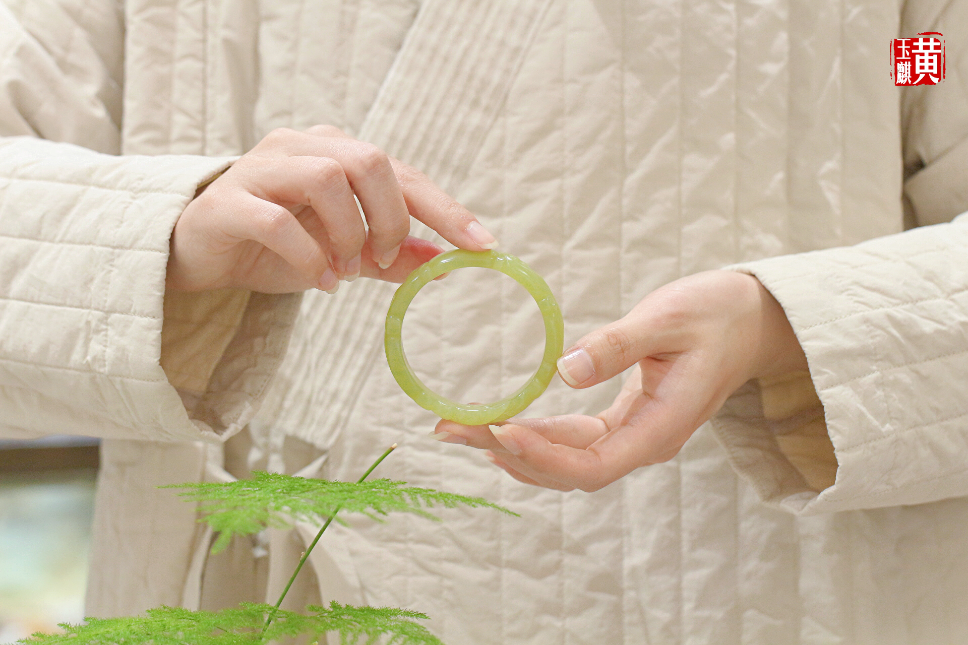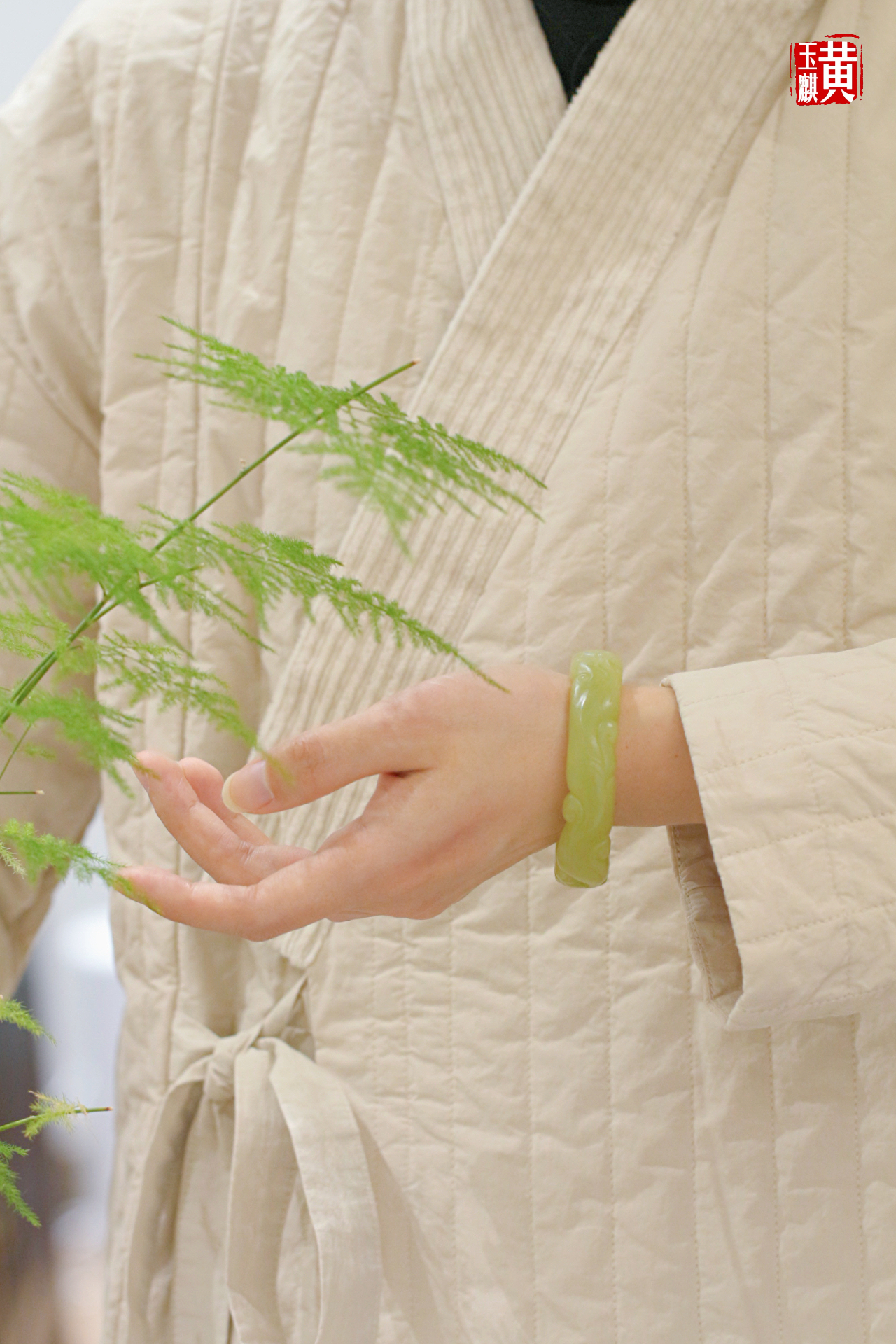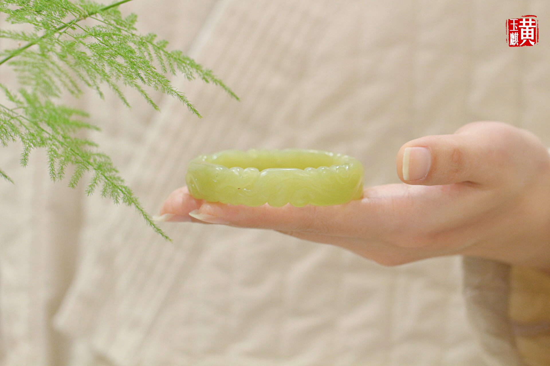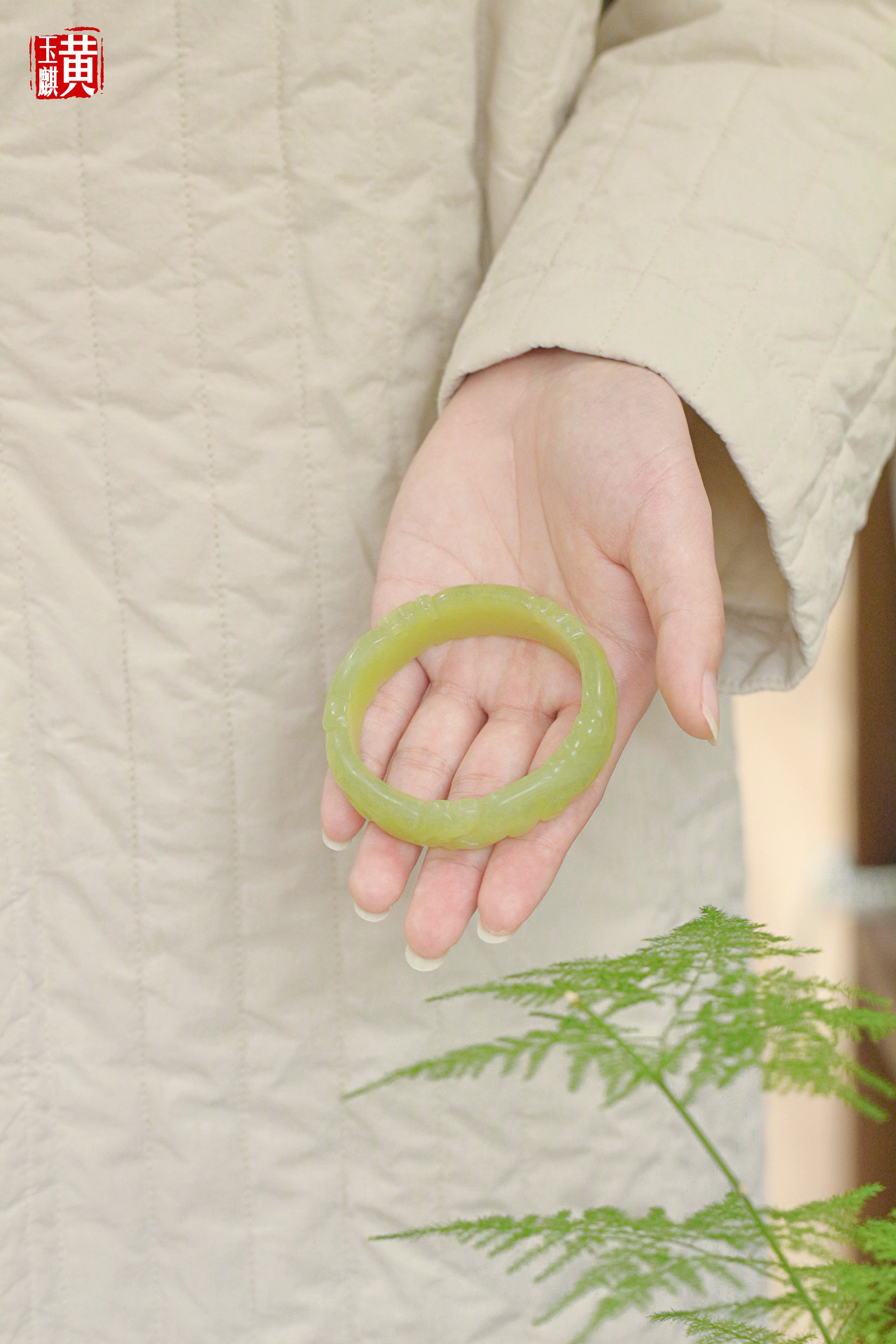 和田黄玉龙凤手镯赠证书圈口:54mm重量:44.98g镯边:14.3*7mm