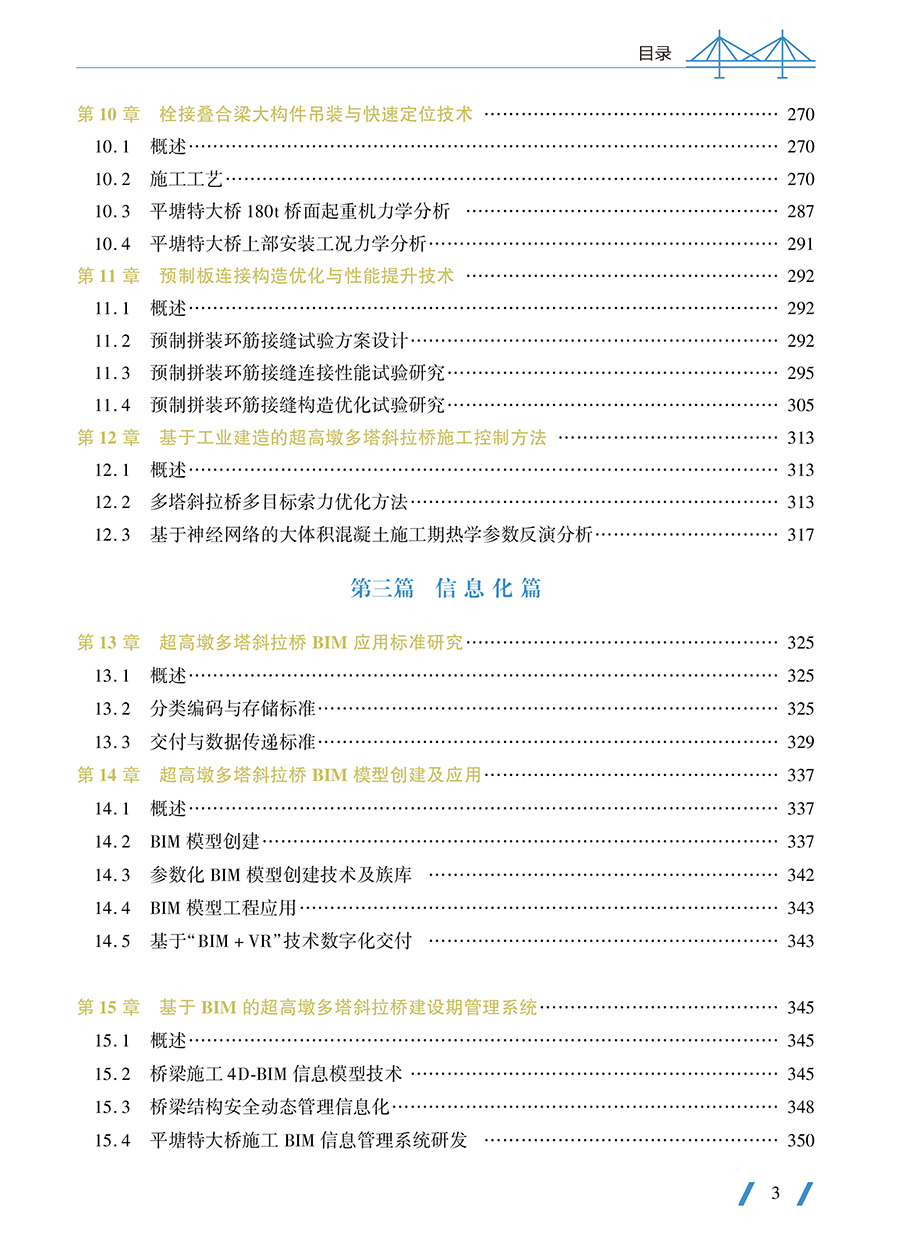 本书共16 章,分别为绪论,合理结构体系及刚度配置研究,地震作用下结构设计与性能分析,风作用下结构设计与性能试验,山区超高墩多塔斜拉桥精细化荷载模型和设计对策,极端事件下荷载作用模式、设计方法与对策,超高墩塔施工技术研究,塔梁结合部的连接施工技术研究,栓接叠合梁的加工工艺和拼装技术,栓接叠合梁大构件吊装与快速定位技术,预制板连接构造优化与性能提升技术,基于工业建造的超高墩多塔斜拉桥施工控制方法,超高墩多塔斜拉桥BIM 应用标准研究,超高墩多塔斜拉桥BIM 模型创建及应用,基于BIM 的超高墩多塔斜拉桥建设期管理系统,基于BIM 的超高墩多塔斜拉桥运营养护管理系统。本书可供桥梁建设者、相关研究学者和有关从业人员参考使用。