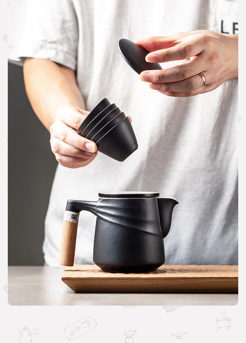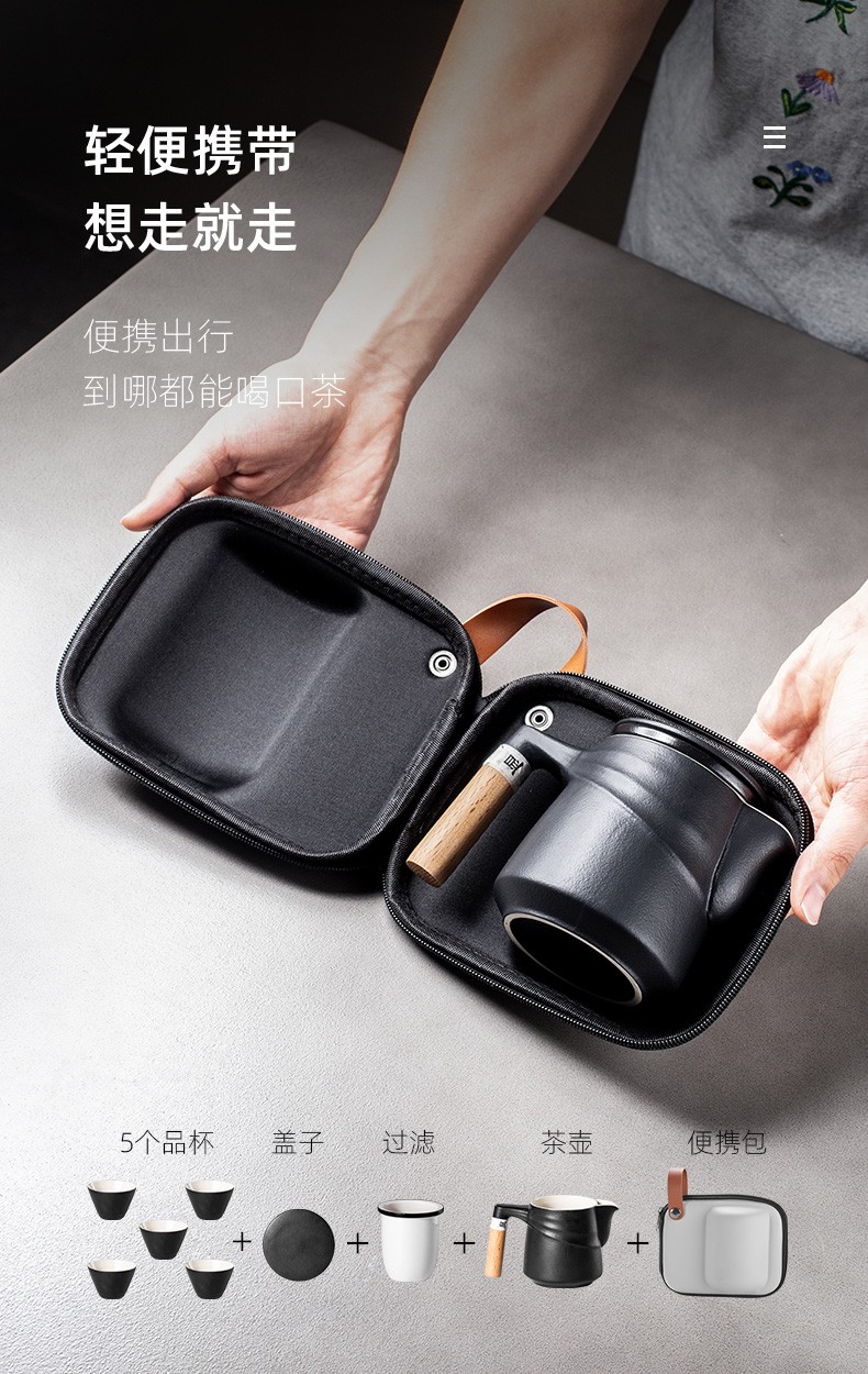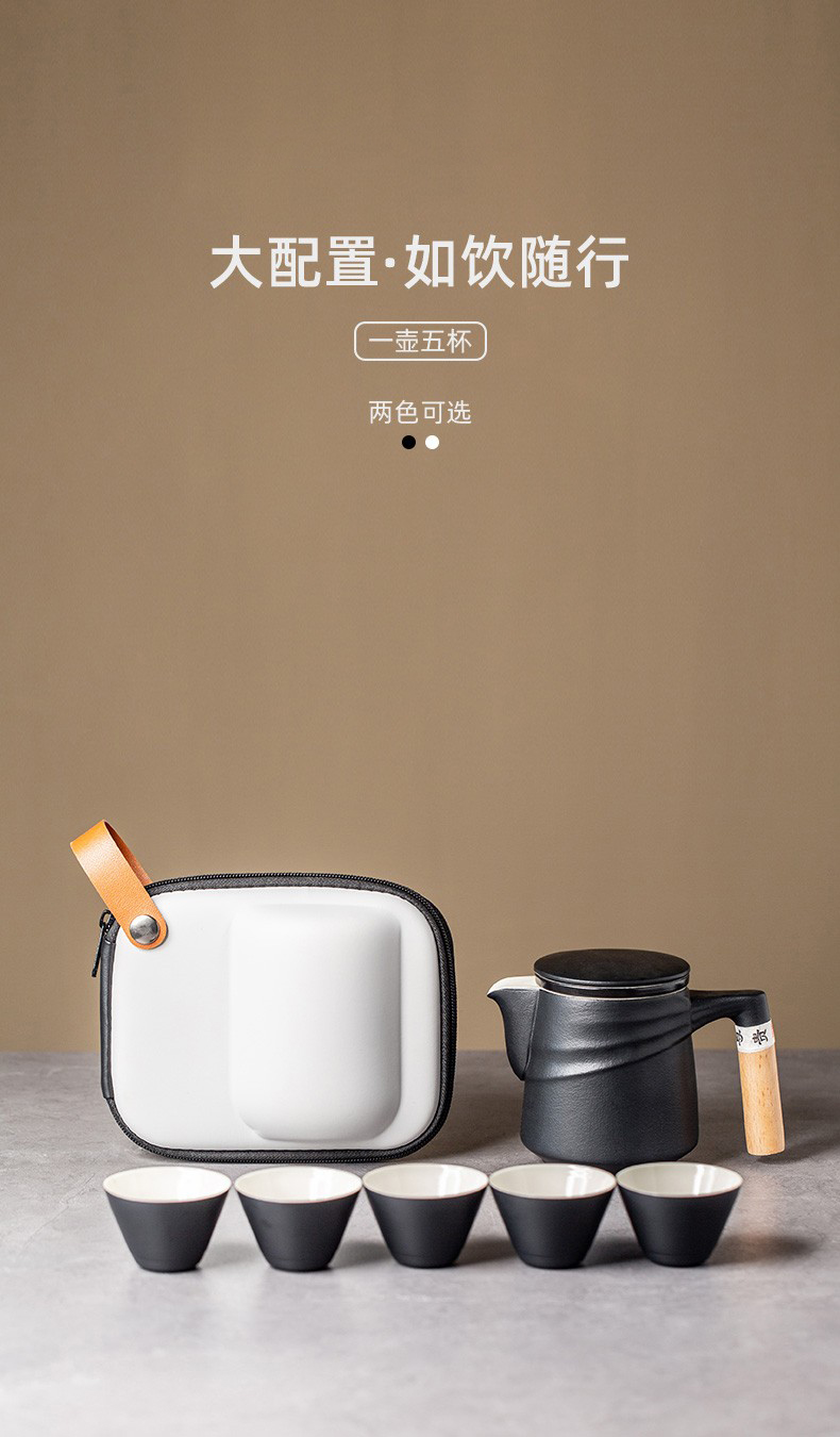 陶瓷旅行茶具功夫茶壶套装陶瓷快客杯便携式一壶五杯户外泡茶 轩昂快客杯(黑)VO1d