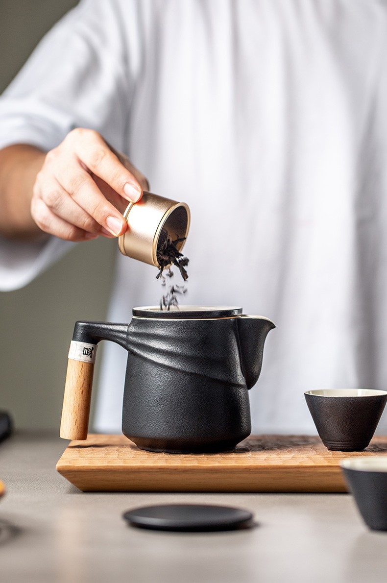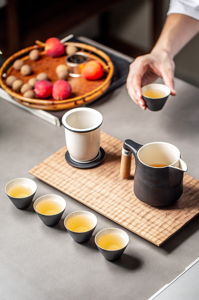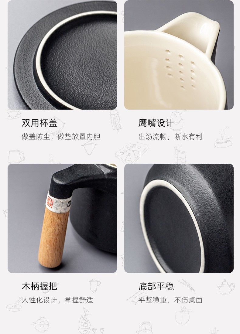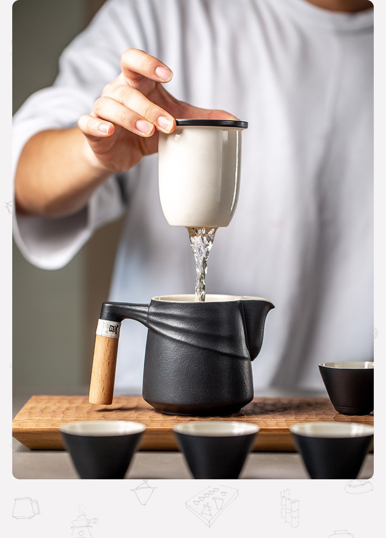 陶瓷旅行茶具功夫茶壶套装陶瓷快客杯便携式一壶五杯户外泡茶 轩昂快客杯(黑)VO1d