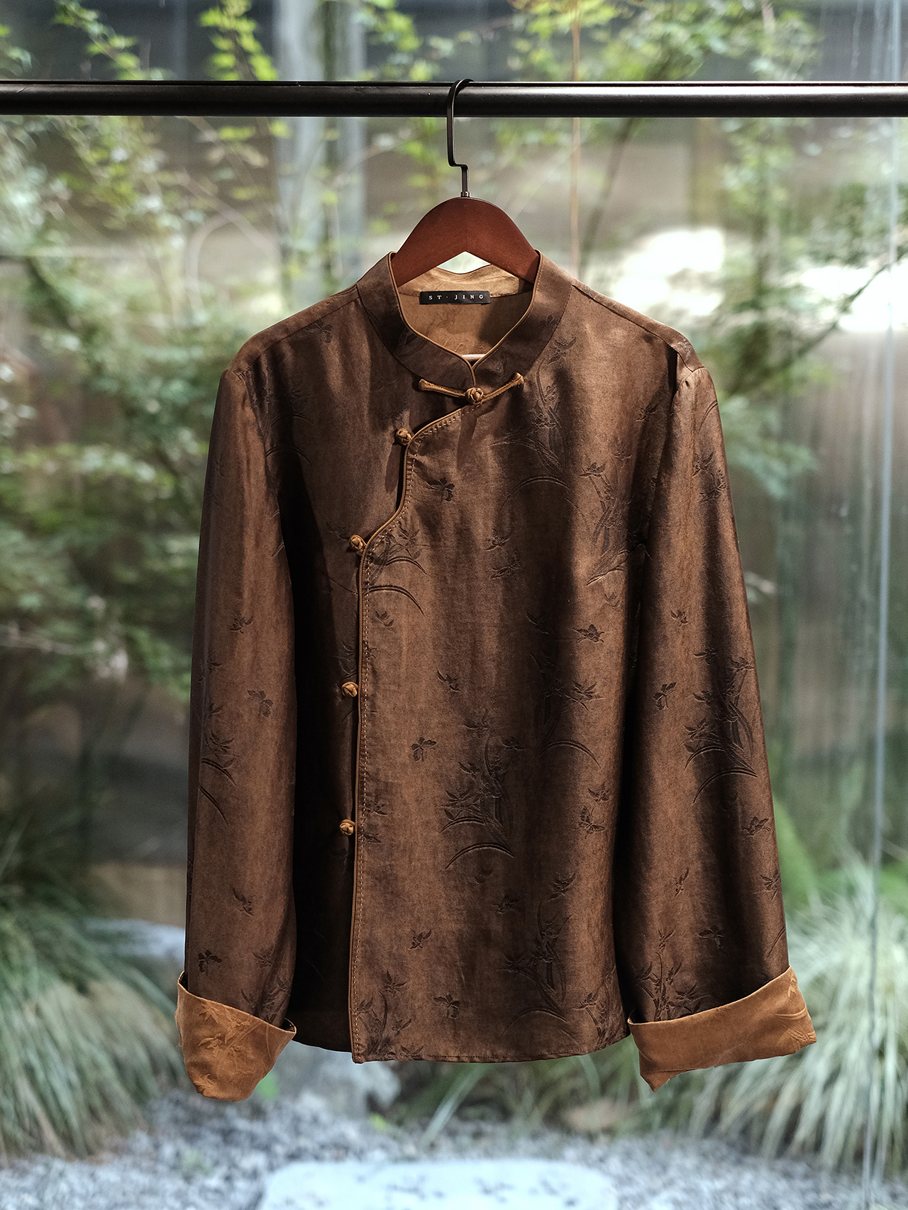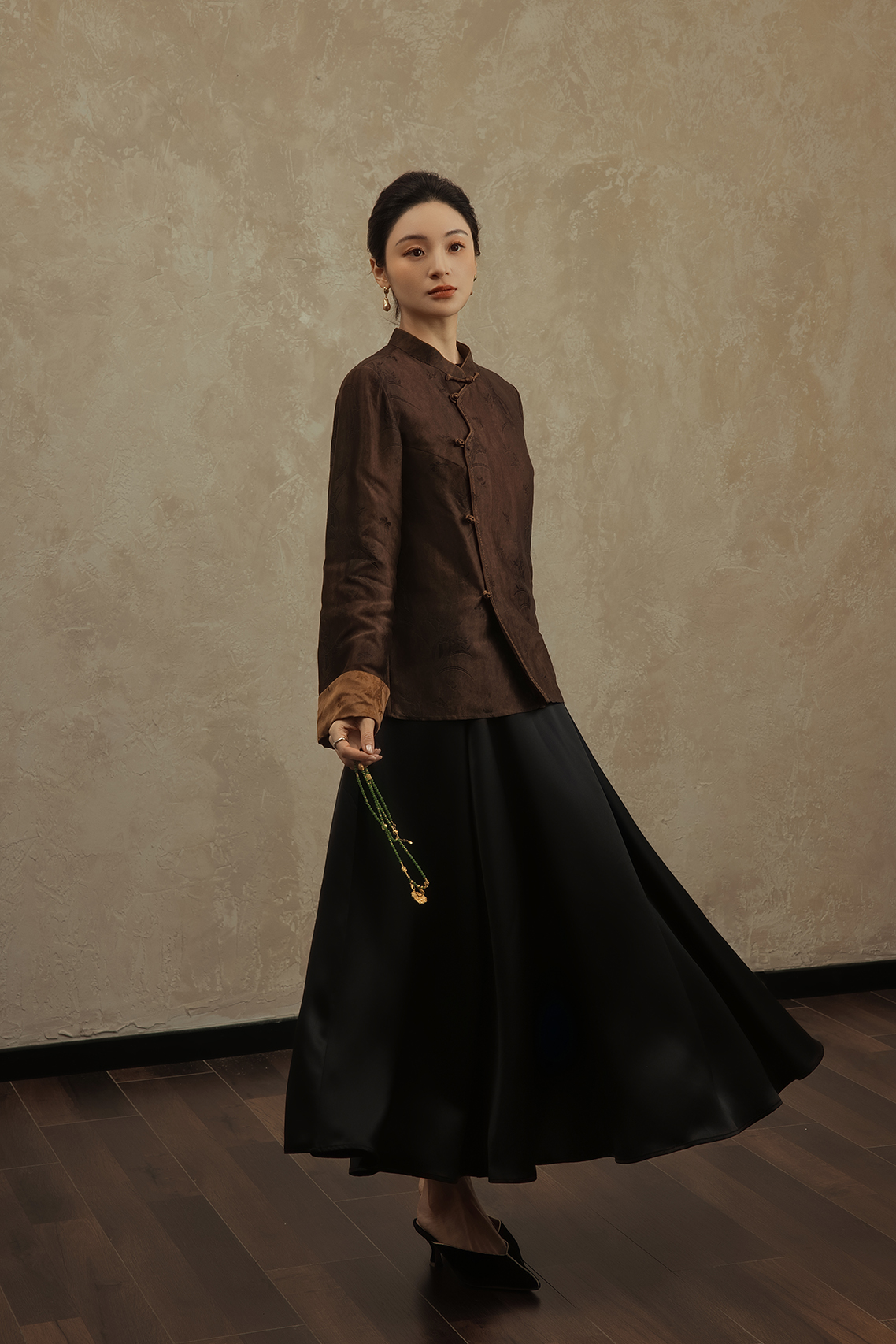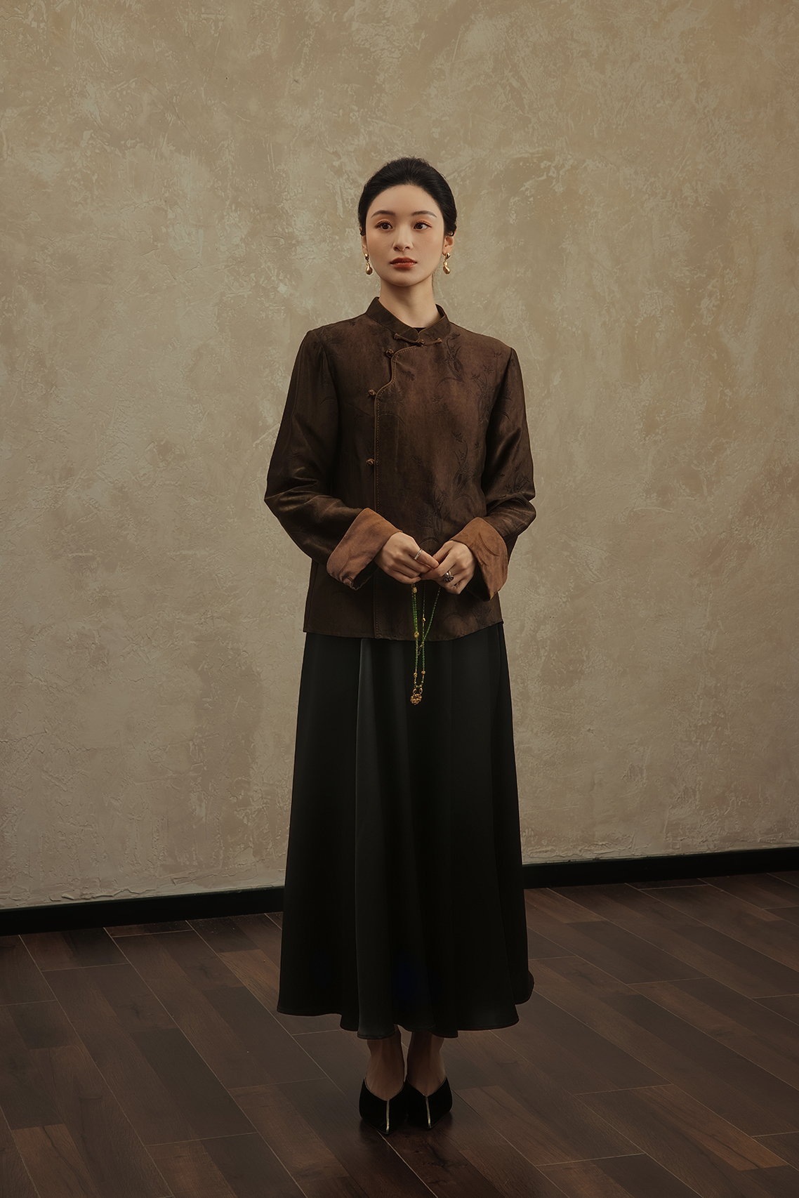 盛唐婧 | 轻奢极简提花重缎香云纱偏襟上衣衬衫
