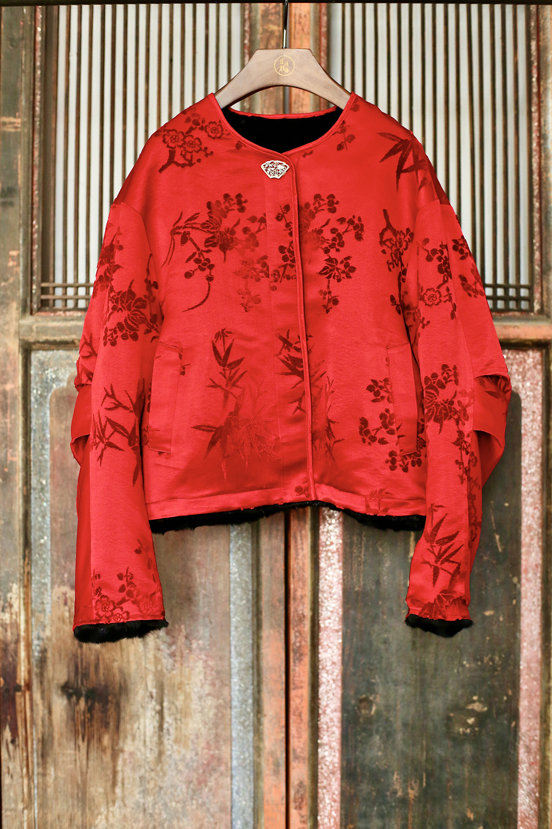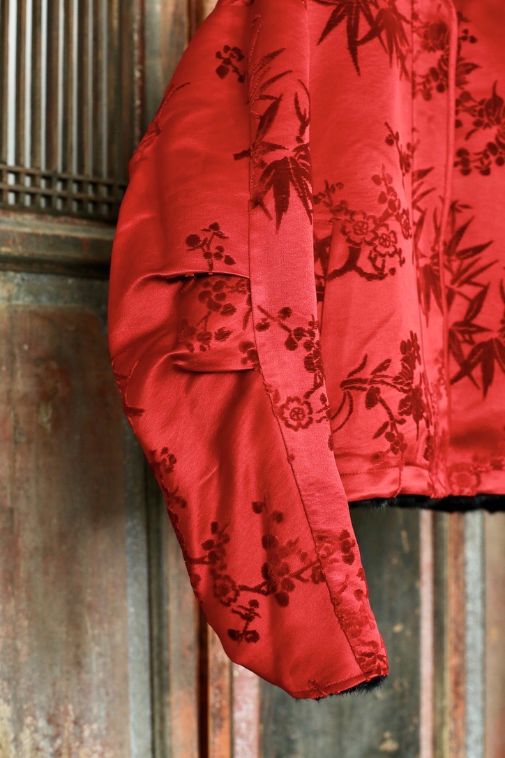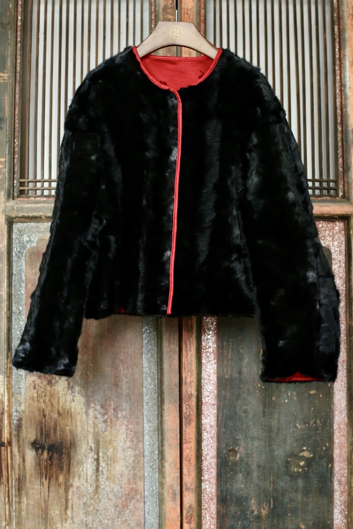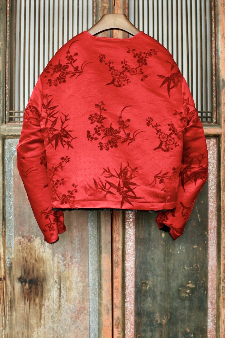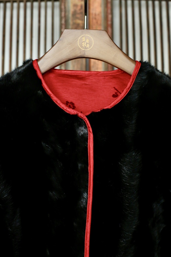 盛唐牡丹 | 水貂拼梅兰竹菊漳缎双面穿外套(里红色)