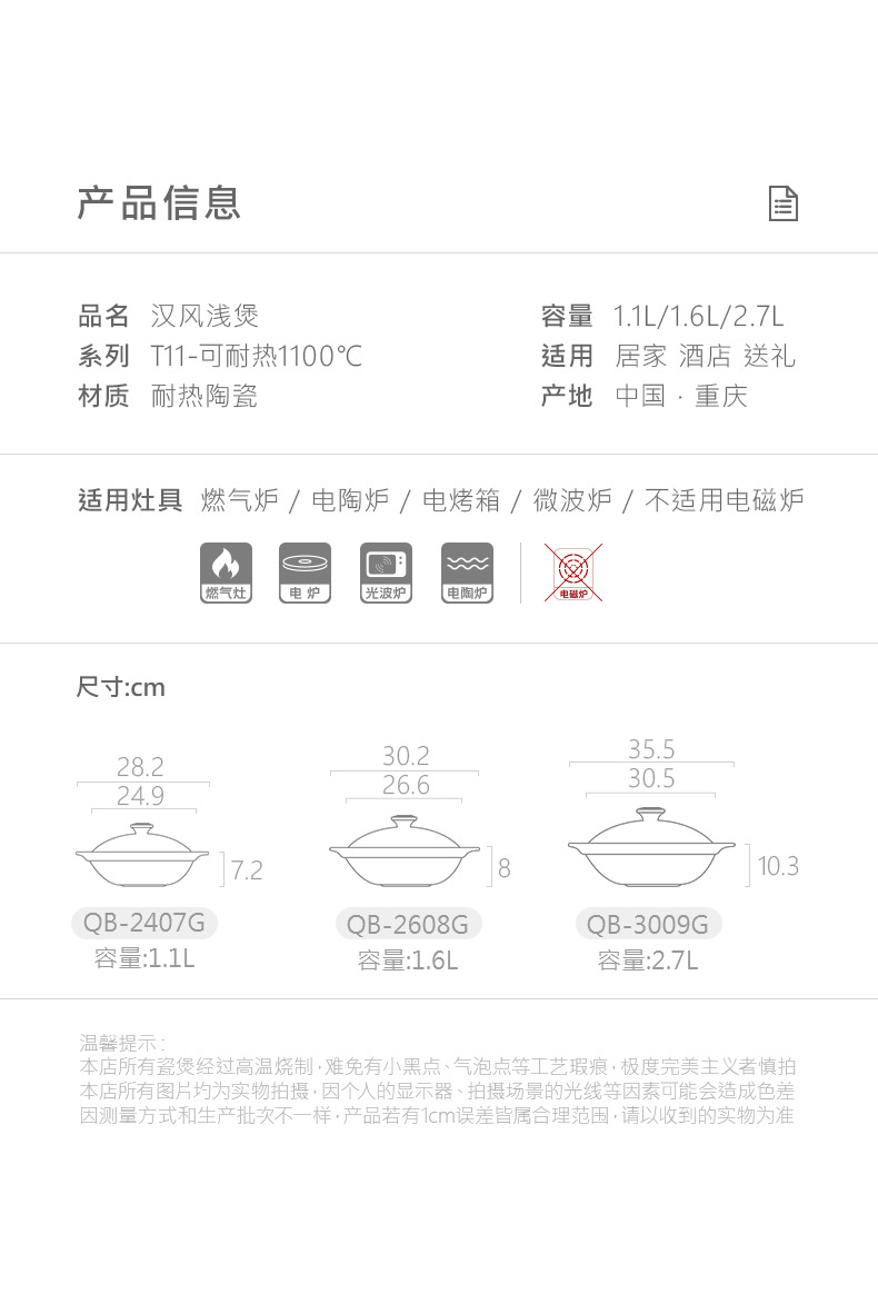 【陶煲王浅锅•升级版】1100°干烧系列汉风浅煲 明火耐高温浅锅 浅煲煲仔饭煲仔菜黄焖鸡干锅菜陶瓷沙锅