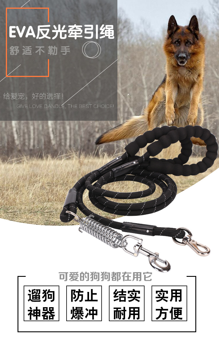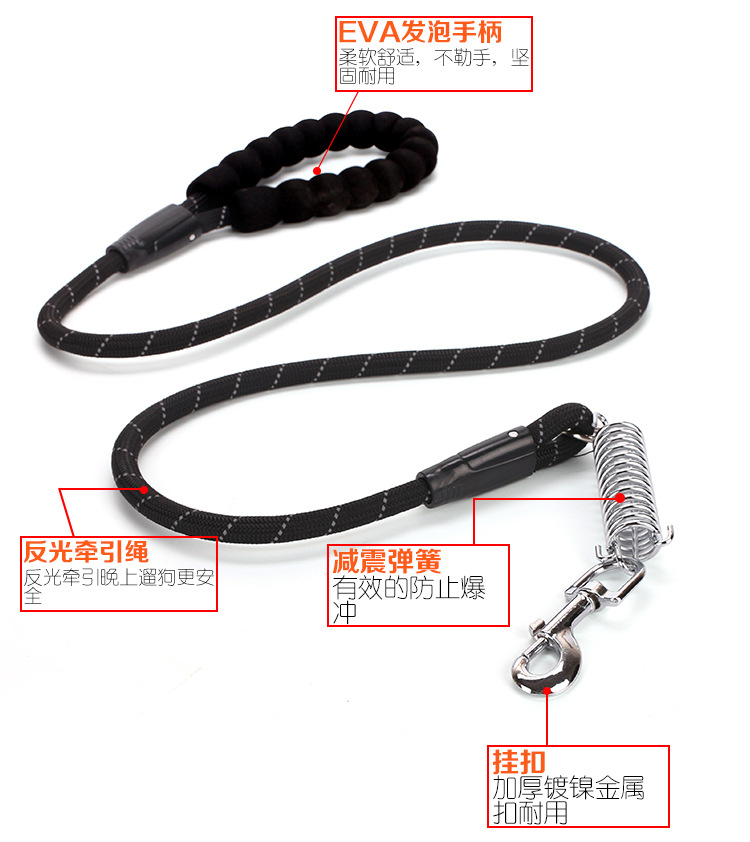 【宠物牵引绳】 EVA狗狗尼龙反光弹簧防爆冲牵引带圆绳