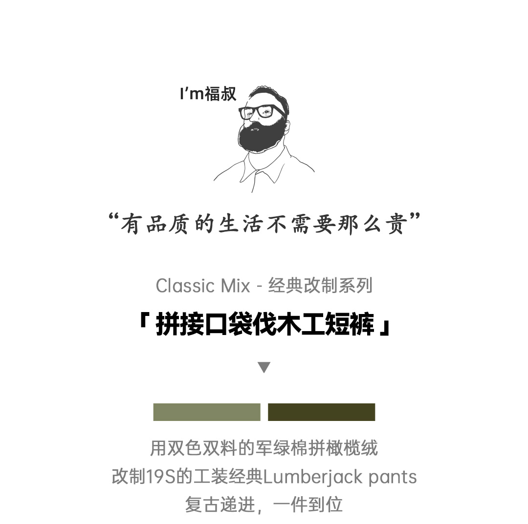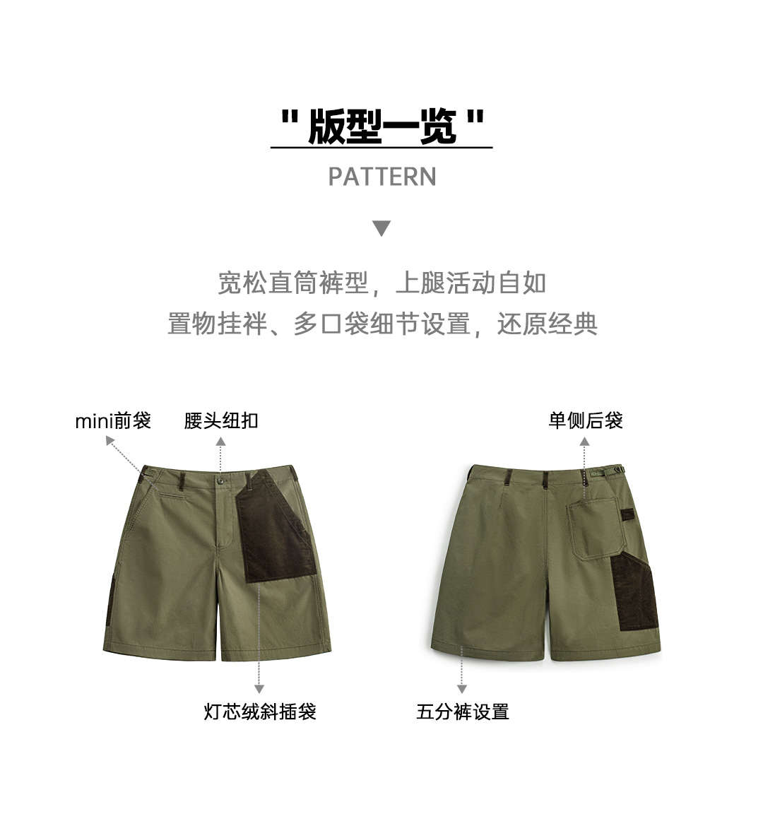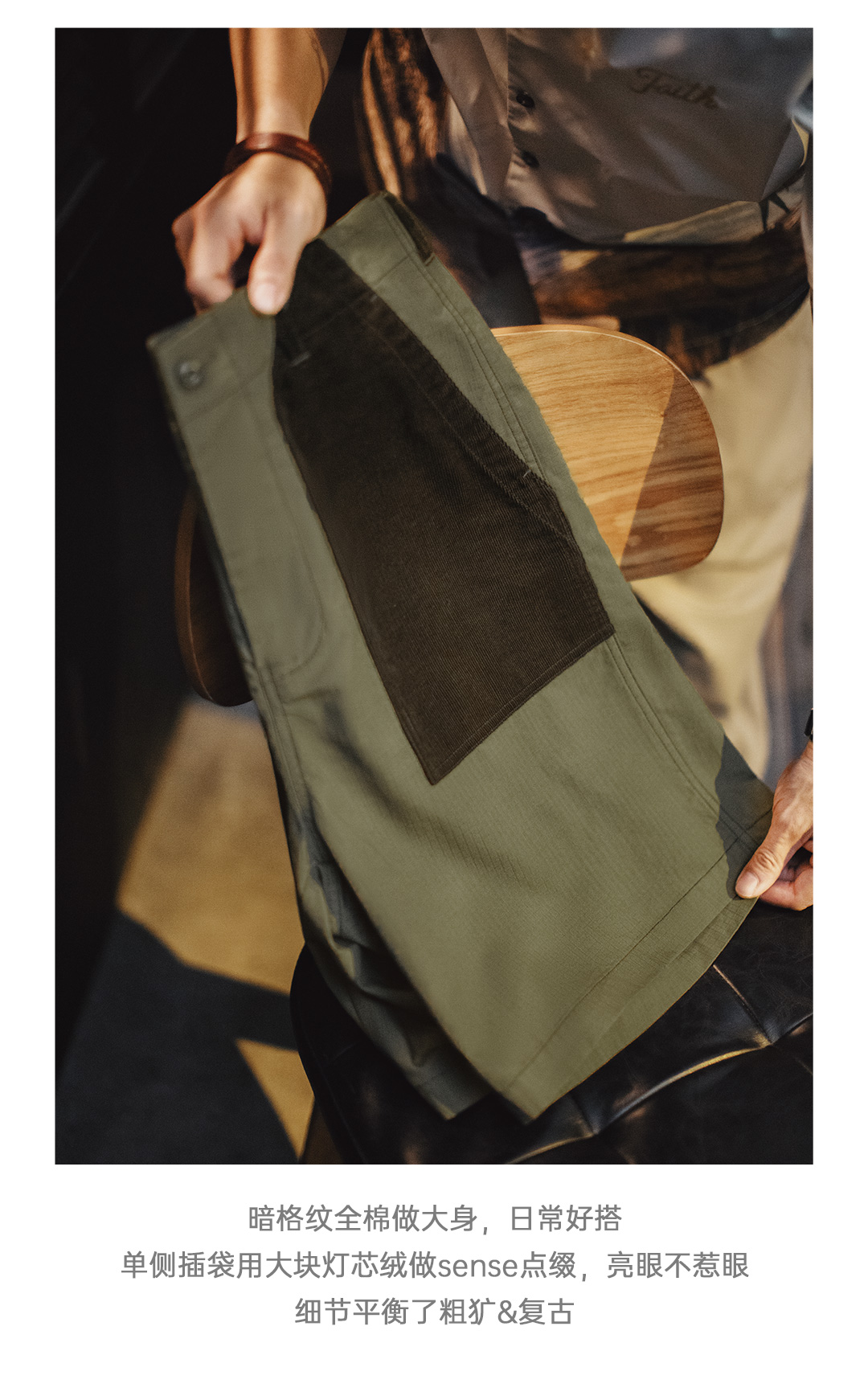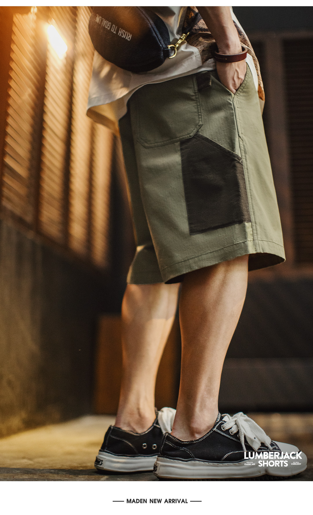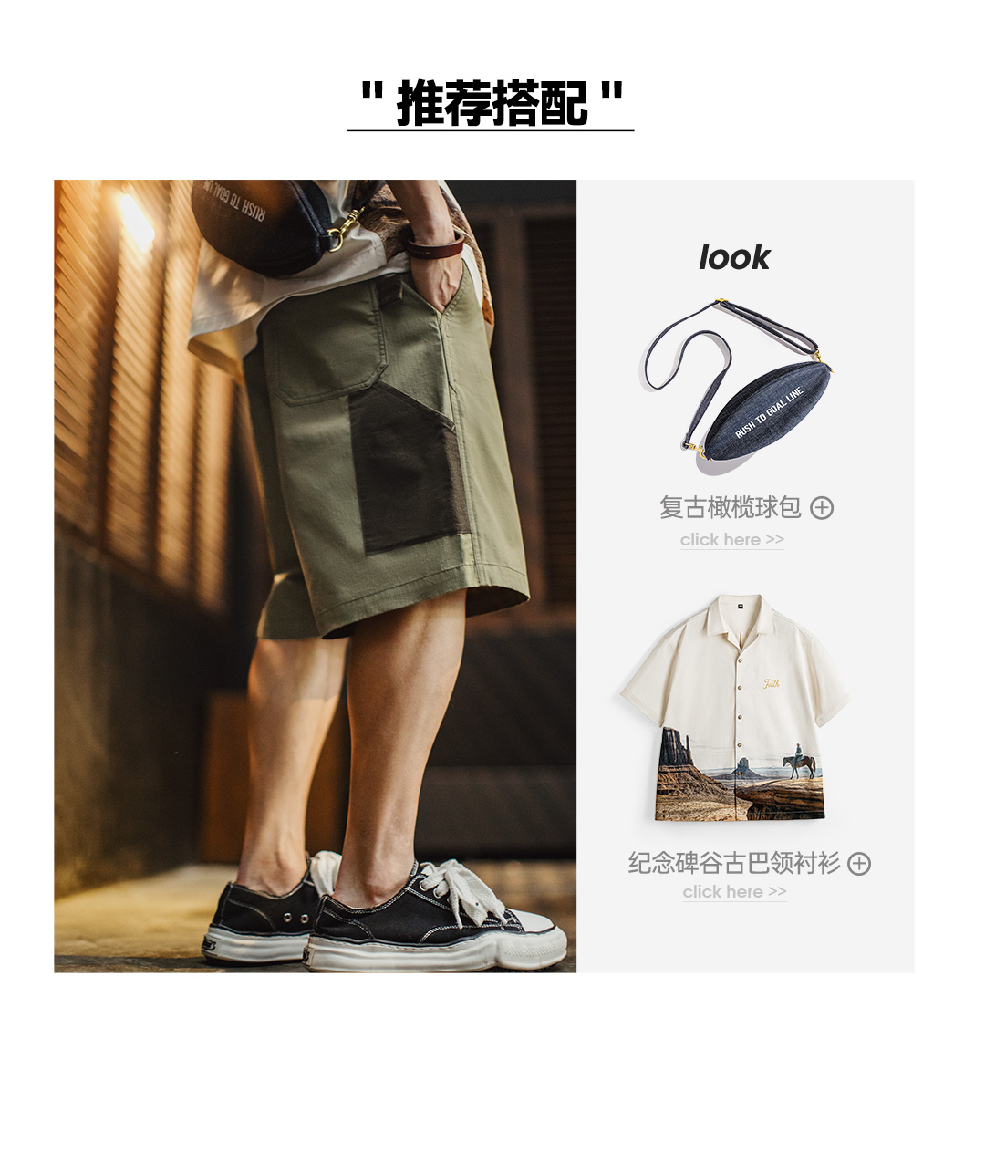 马登工装美式复古拼色伐木短裤大口袋军绿色直筒og107五分裤男夏