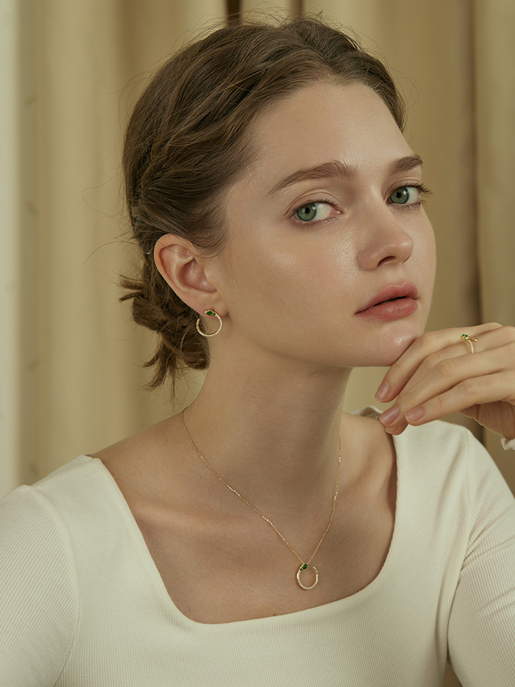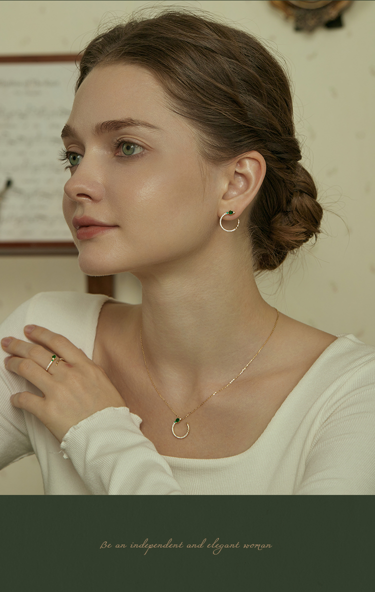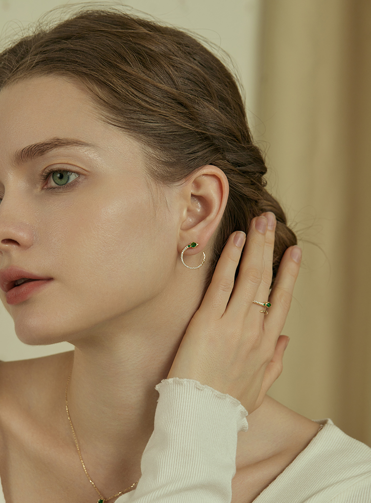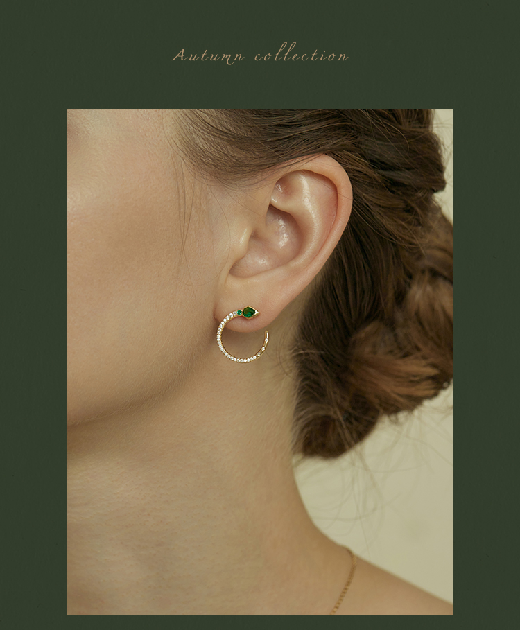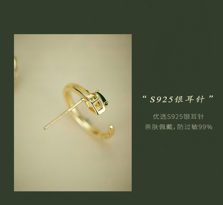Oflye潮流饰品 祖母绿灵蛇S925纯银耳钉女新款高级感轻奢微镶钻蛇形设计气质耳环