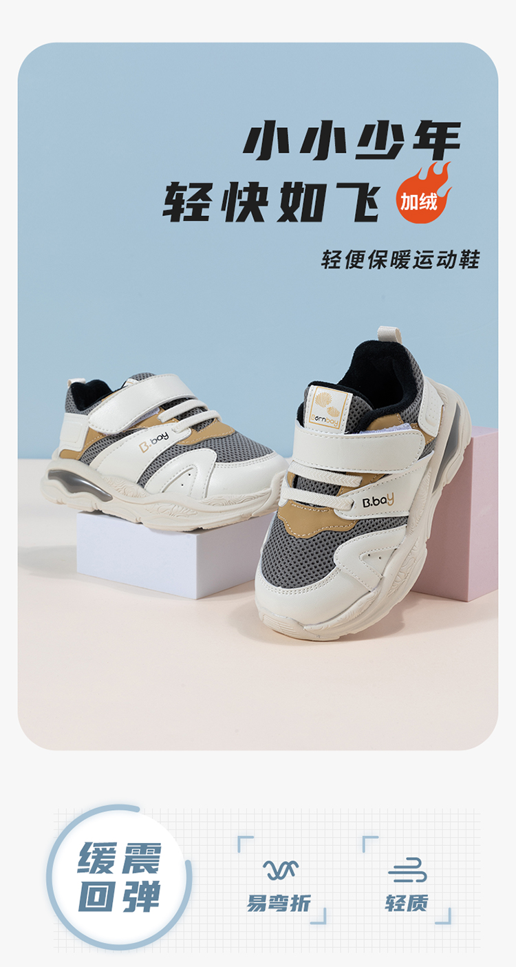 贝贝怡童鞋跑步鞋秋冬软底男女童机能鞋网面透气运动鞋子234X521