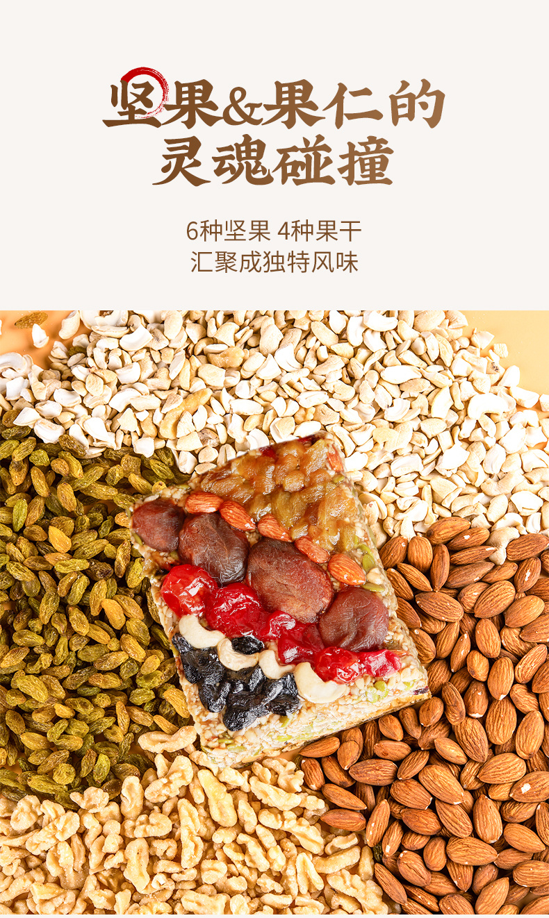 这款切糕,满满都是货真价实的坚果,6种坚果+4种果干,实实在在,0添加剂,0色素,0防腐剂。坚果有核桃仁、巴木旦仁、腰果仁、南瓜籽仁、葵花籽仁和花生碎,果干包括葡萄干、蔓越梅干、黑杏脯和圣女果干,都来自新疆,通过传统工艺处理后,再将特制的糖经过115度的高温,熬煮4小时,成为绵密拔丝的糖浆固体,与坚果果干一同搅拌、成型,制成的切糕软糯弹牙,还能拔出长长的糖丝,一口下去都是满满的幸福。