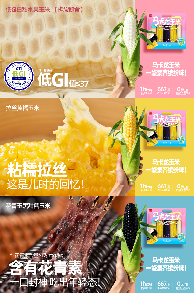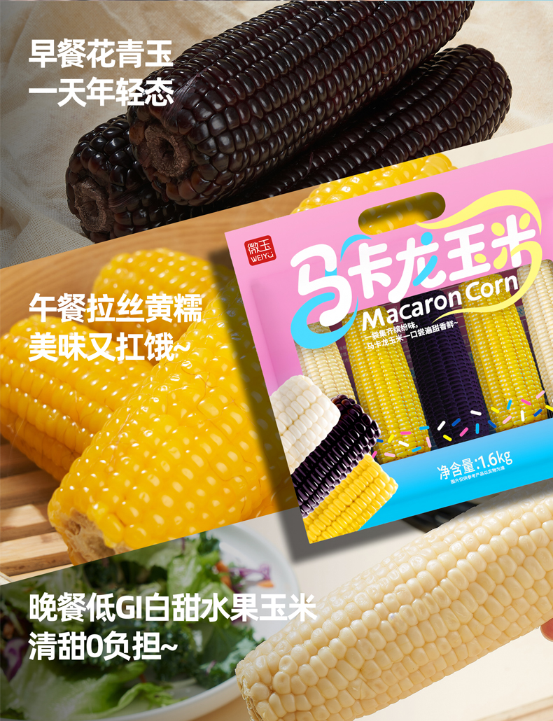 微玉 马卡龙玉米 低脂代餐粗粮香甜糯玉米真空包装 1.2kg