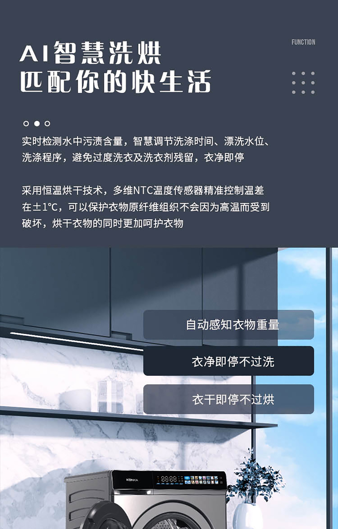 康佳(KONKA)10公斤臻彩智慧洗烘一体机 KH100-1408AQCI