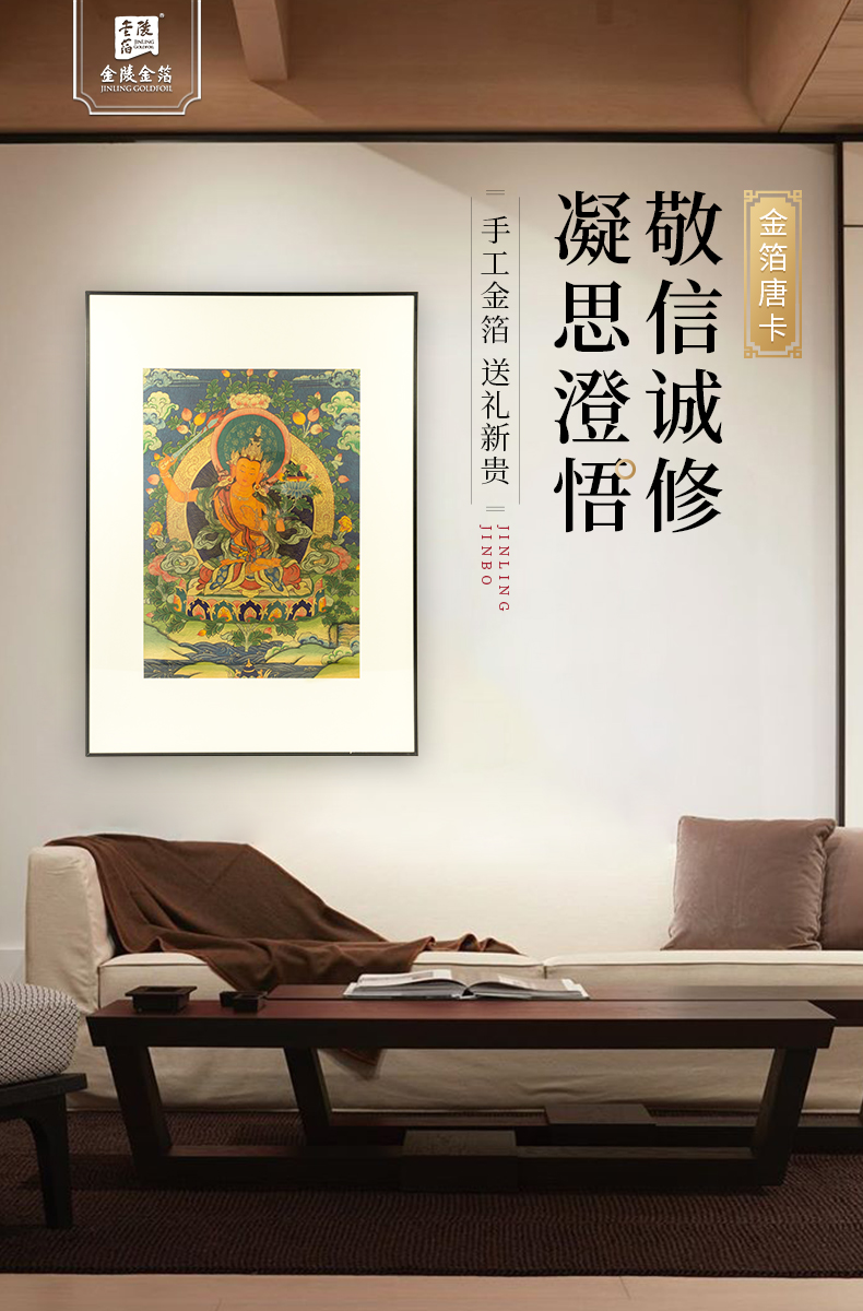 金陵金箔藏族文化唐卡黄财神客厅玄关背景墙挂画壁画装饰金箔画