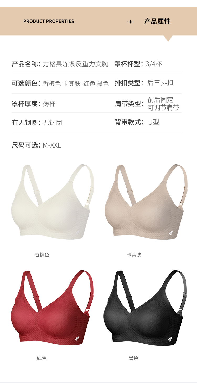 雅黛丽内衣女小胸薄款无痕显瘦文胸果冻条软支撑收副乳美背胸罩女