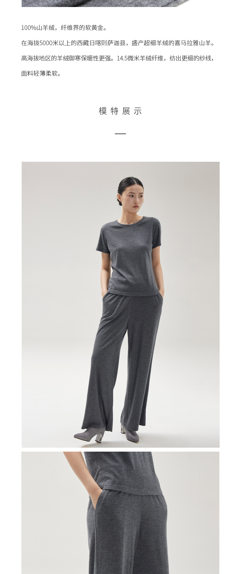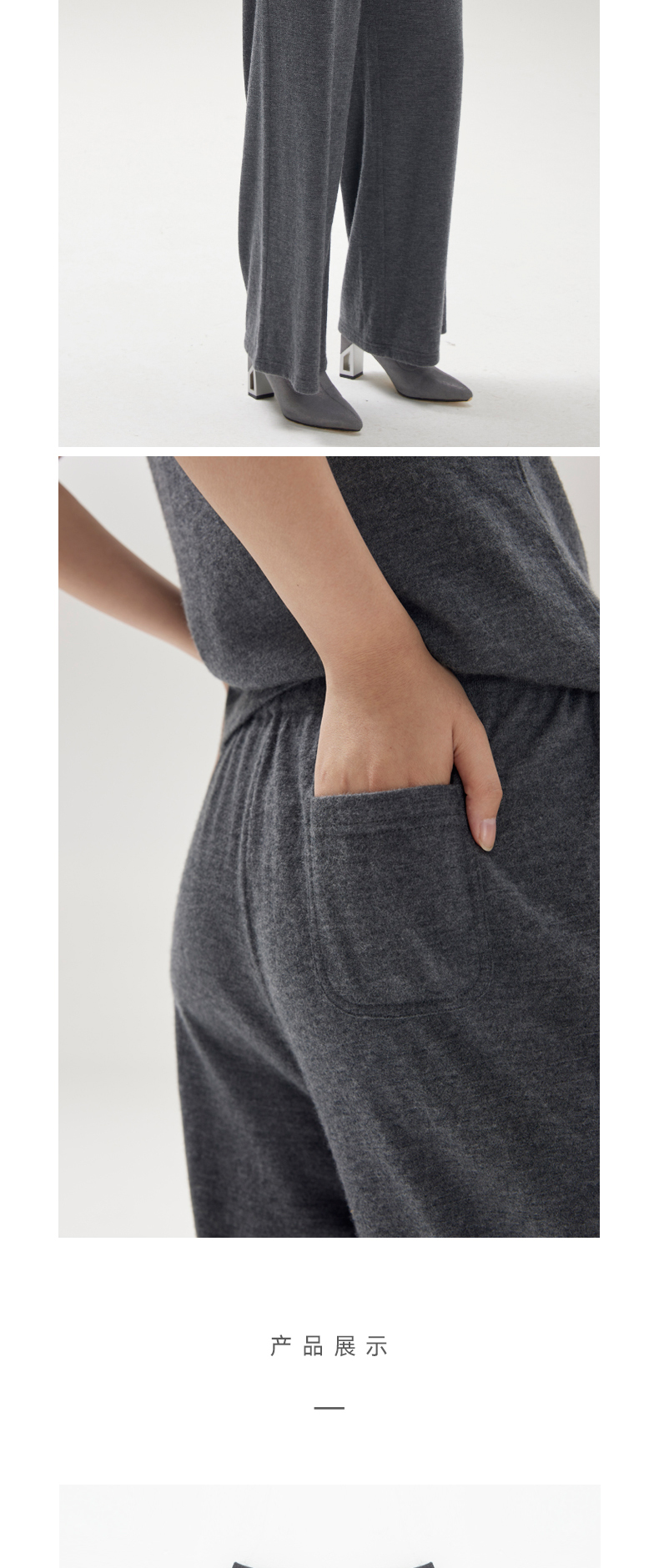 精纺羊绒针织宽腿裤SJF96K383N