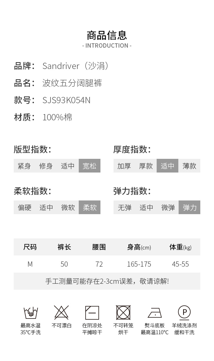 春夏 波纹五分阔腿裤 SJS93K054N
