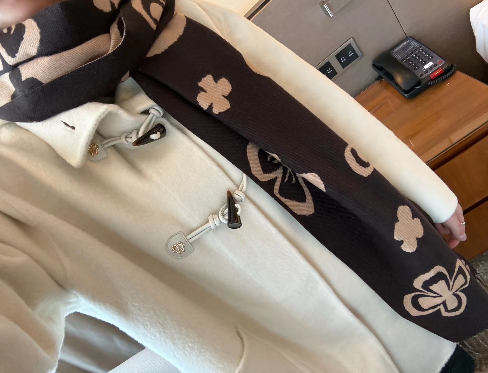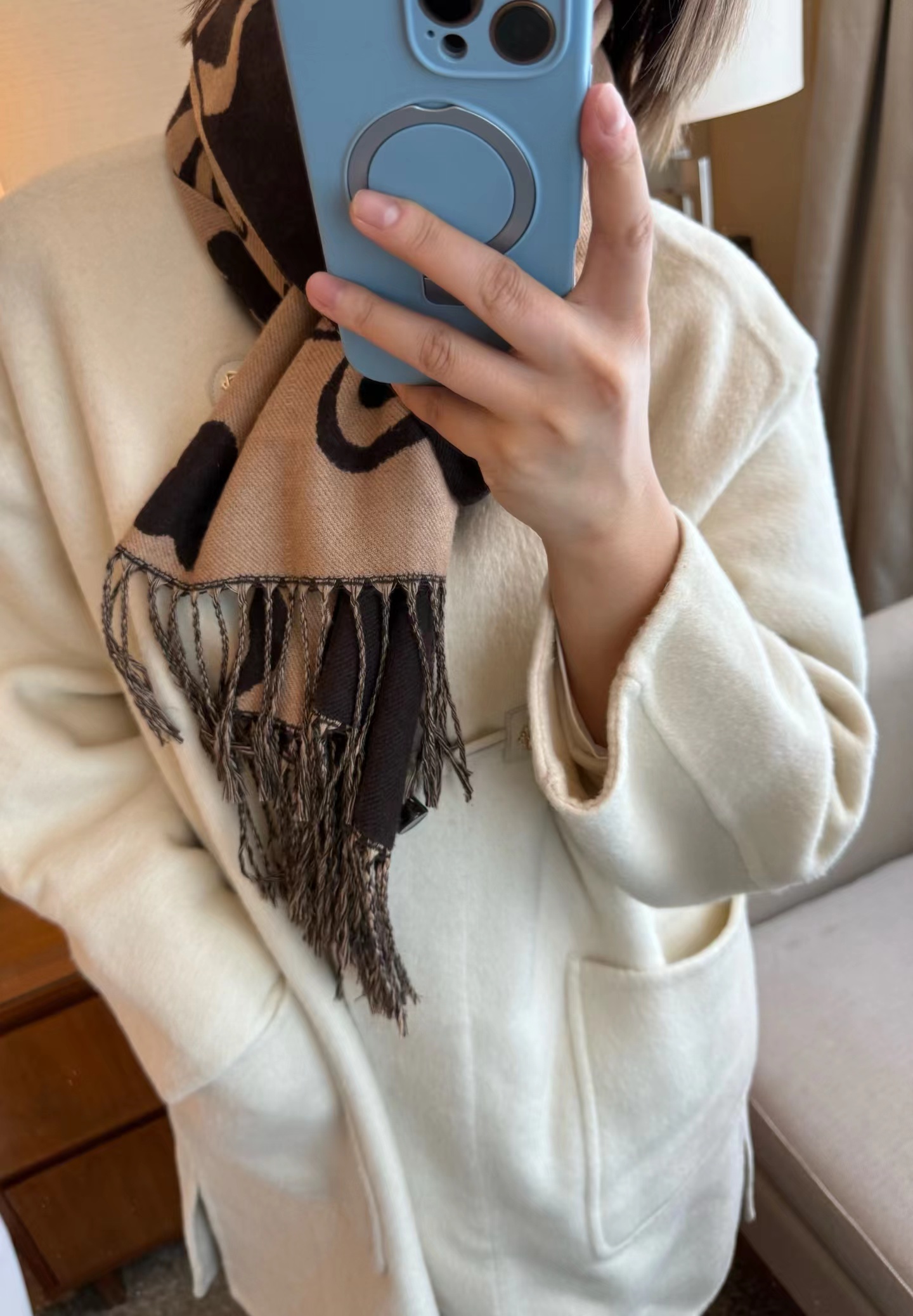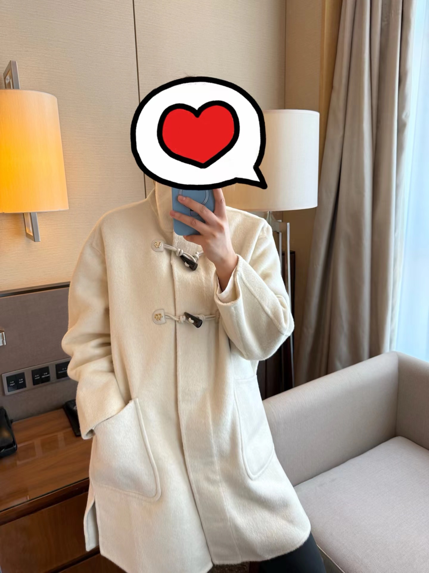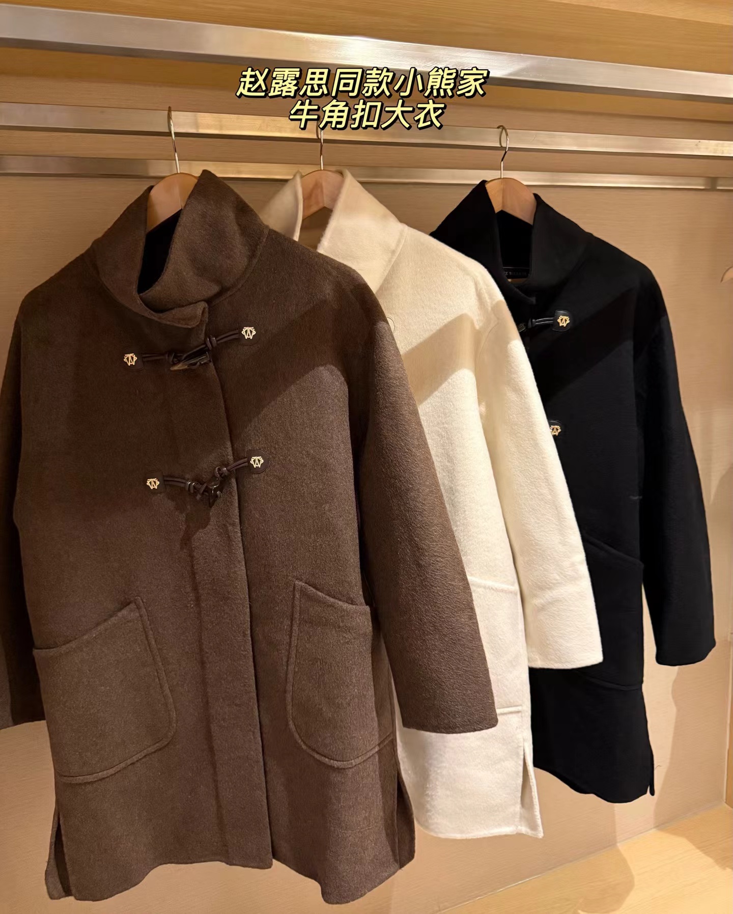 赵露思同款小熊羊绒大衣超有分量一件,面料密实 抗风 成分 绵羊毛+羊绒 穿上保暖度非常高,很抗风一件! 搭配这次的新品围巾一起,好看的!牛角扣大衣 上身减龄又显瘦的,领口敞开穿好看,扣上也好看,小个子女生也能轻松驾驭的款170 120斤穿M l穿到150没问题的白色好看啊 显得整个人白白净净的