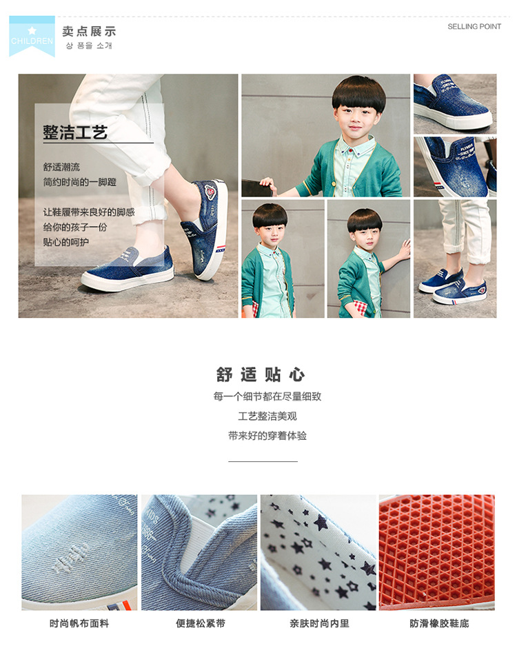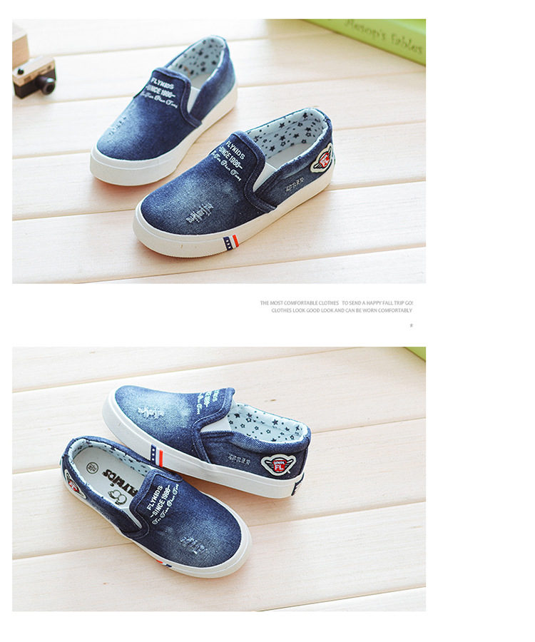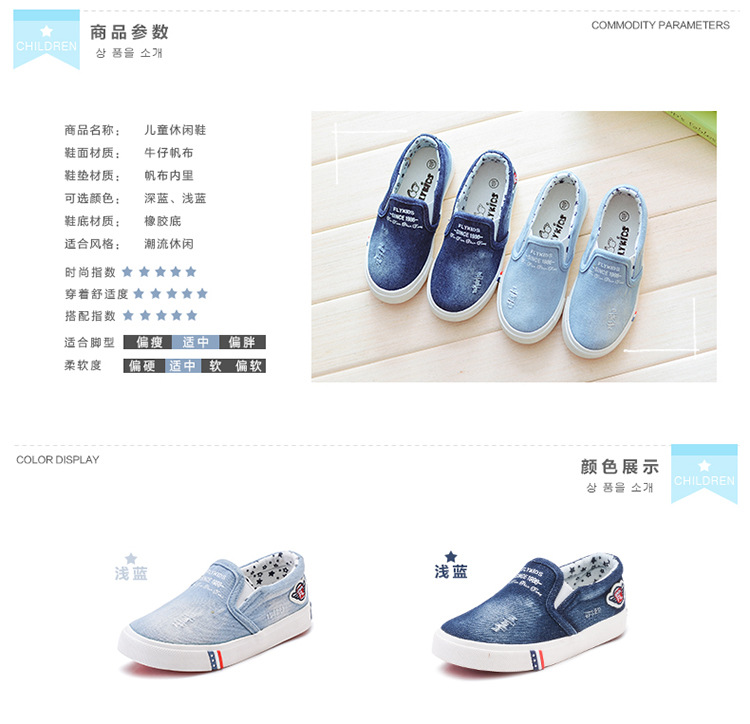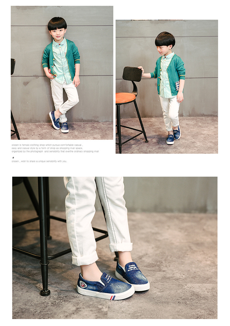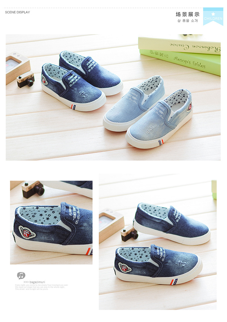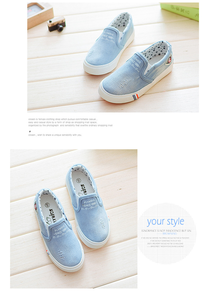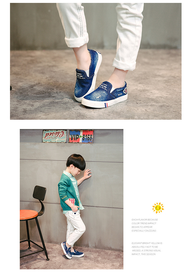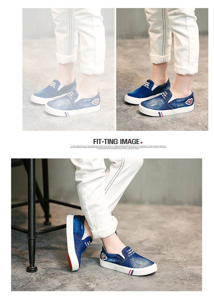 。春季新款儿童帆布鞋套脚童鞋男童低帮板鞋牛仔布时尚女童单鞋
