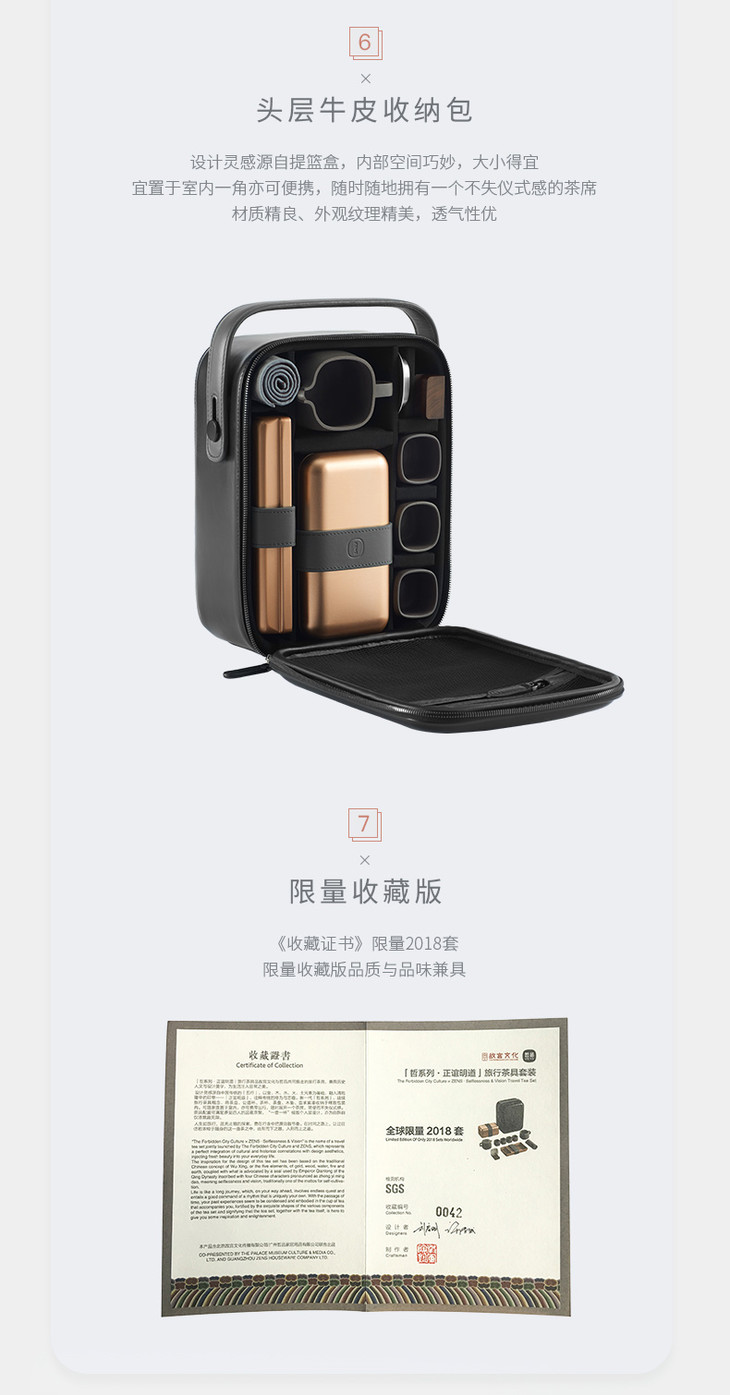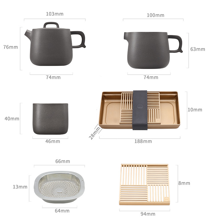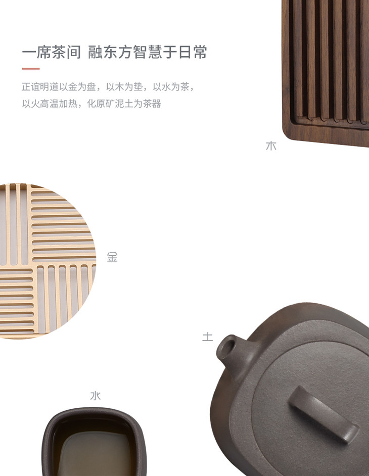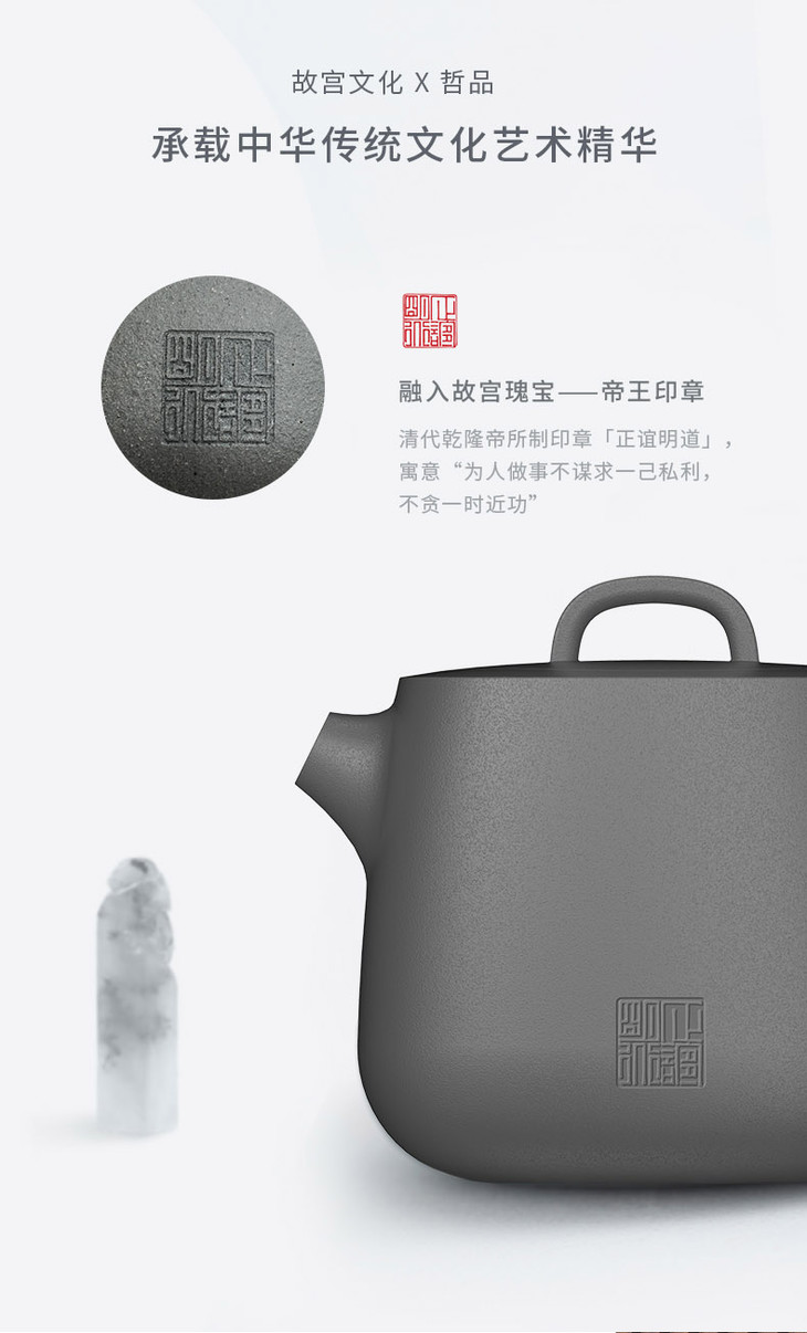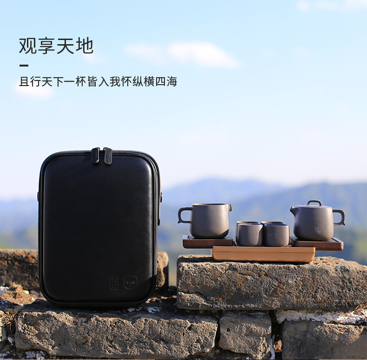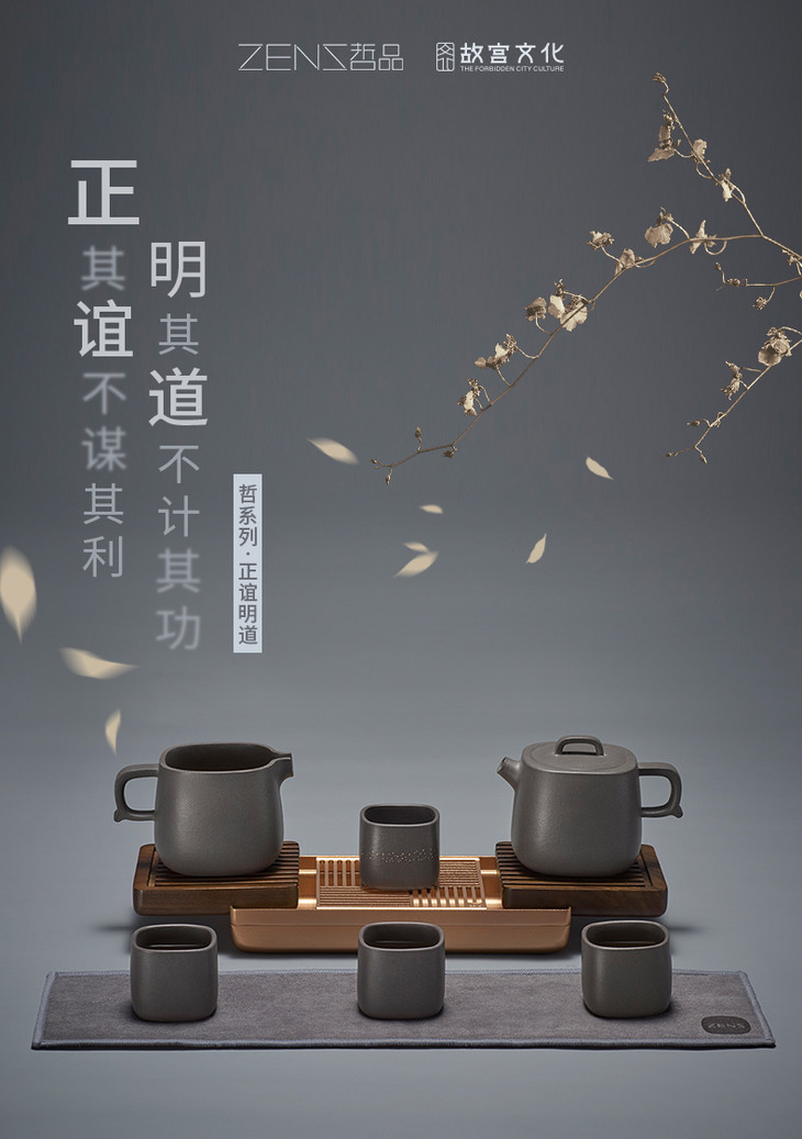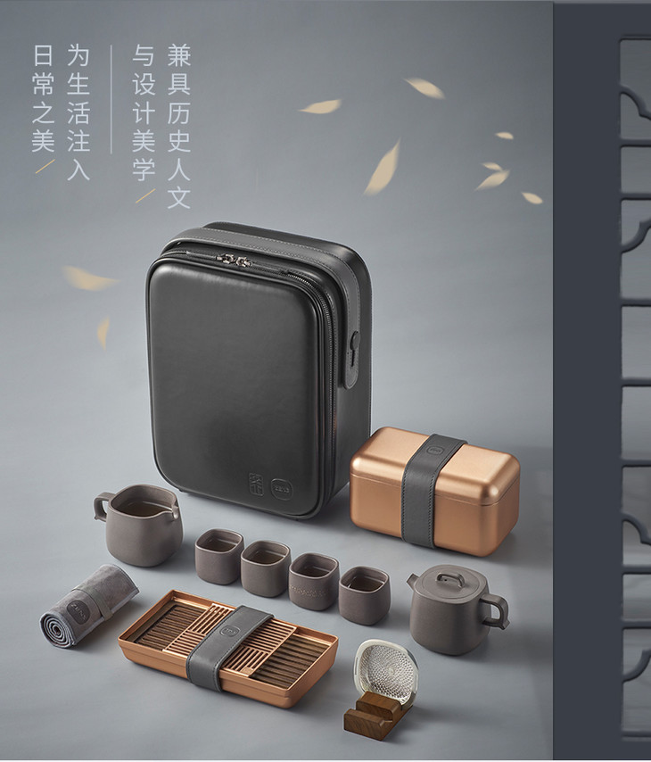 哲品家居× 故宫文化 联合出品正谊明道紫砂功夫茶具套装便携旅行包青灰泥茶具茶盘整套