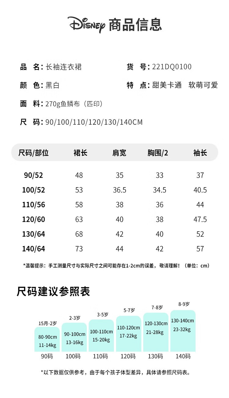 【商场同款】 迪士尼童装24秋季新品女童甜美米妮可爱长袖连衣裙女宝学院风长裙