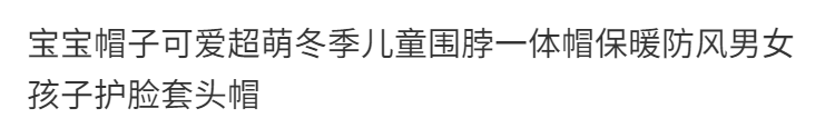 宝宝帽子可爱超萌冬季儿童围脖一体帽保暖防风男女孩子护脸套头帽