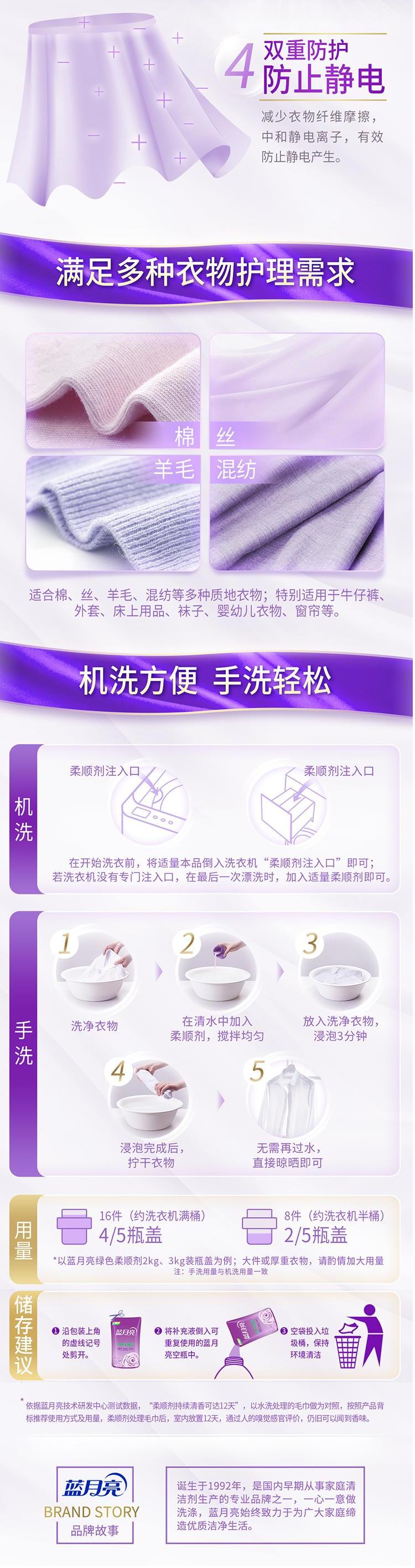 80001012 【品牌直发】蓝月亮薰衣草香柔顺剂 留香护衣防静电 500g*5袋