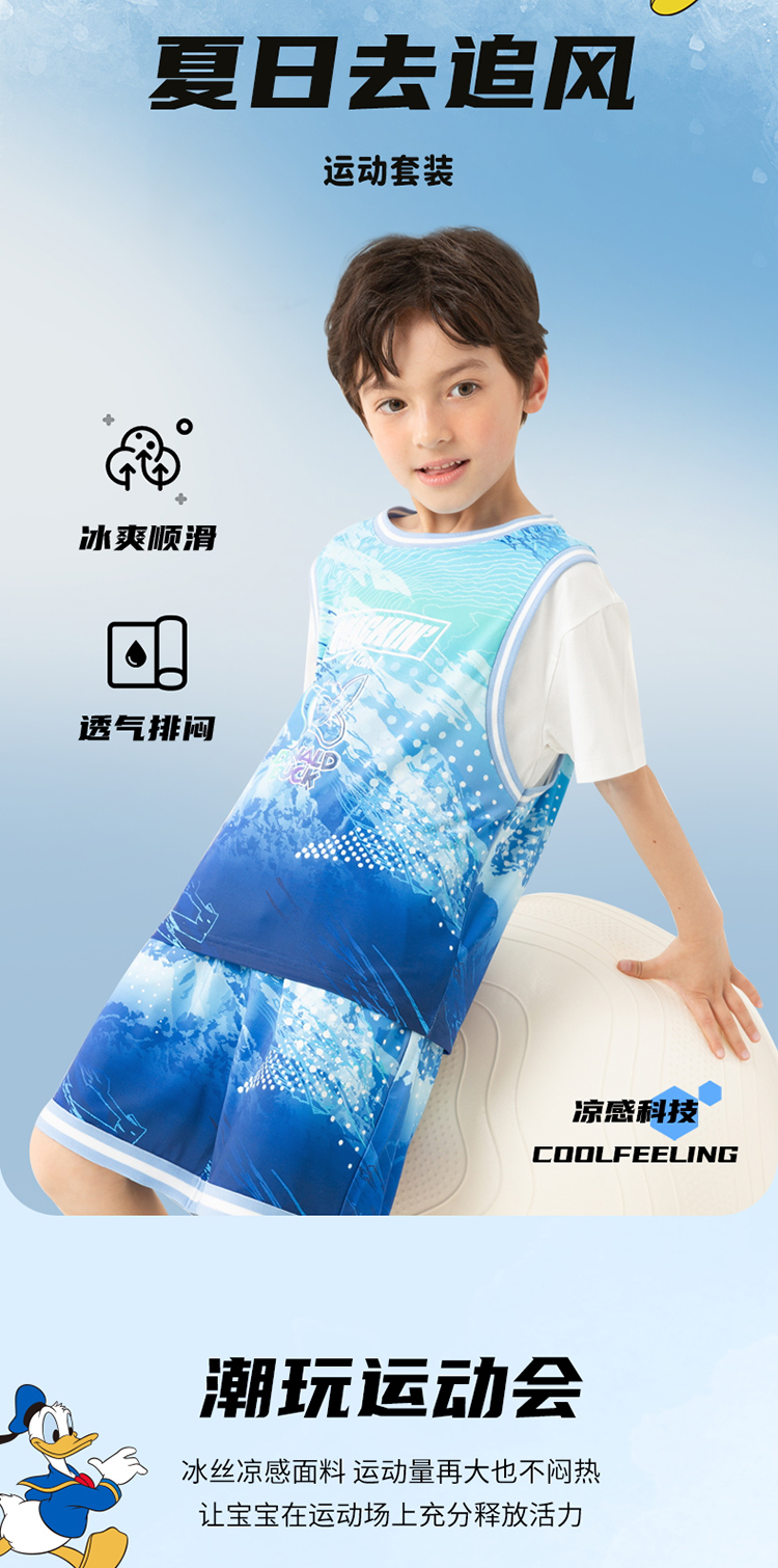 【唐老鸭90周年】迪士尼男宝短袖冰丝透气套装ZD2DT051