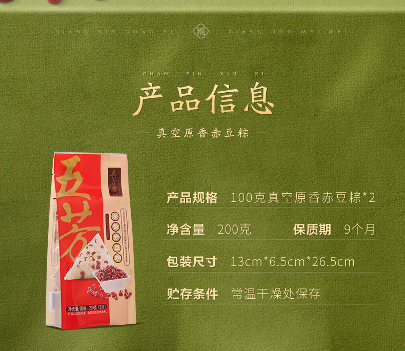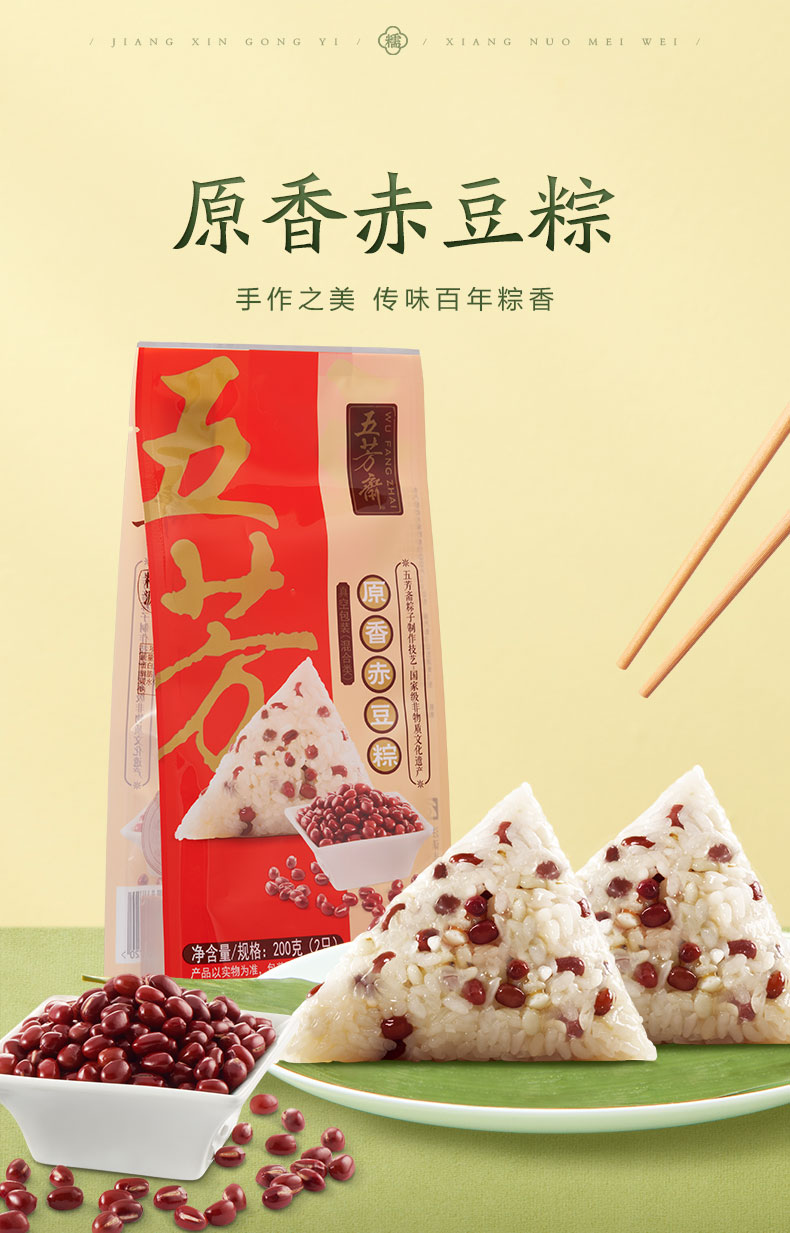 五芳斋 真空原香赤豆粽 柴火灶古法 赤豆颗粒饱满 低糖轻负担 100g*2