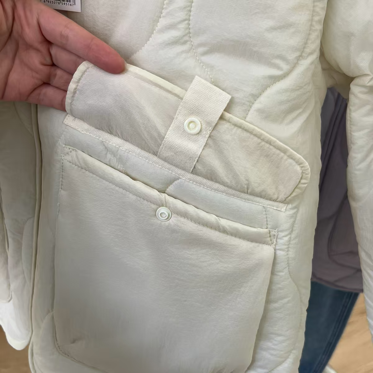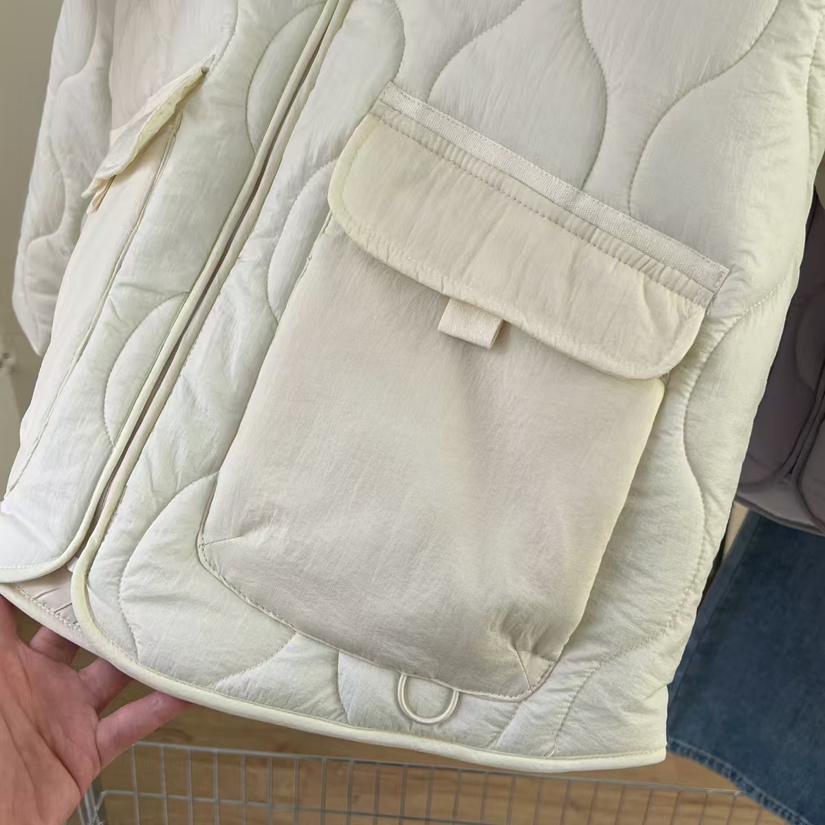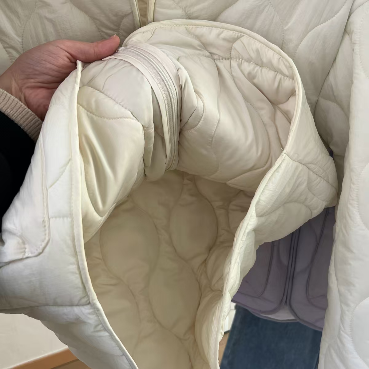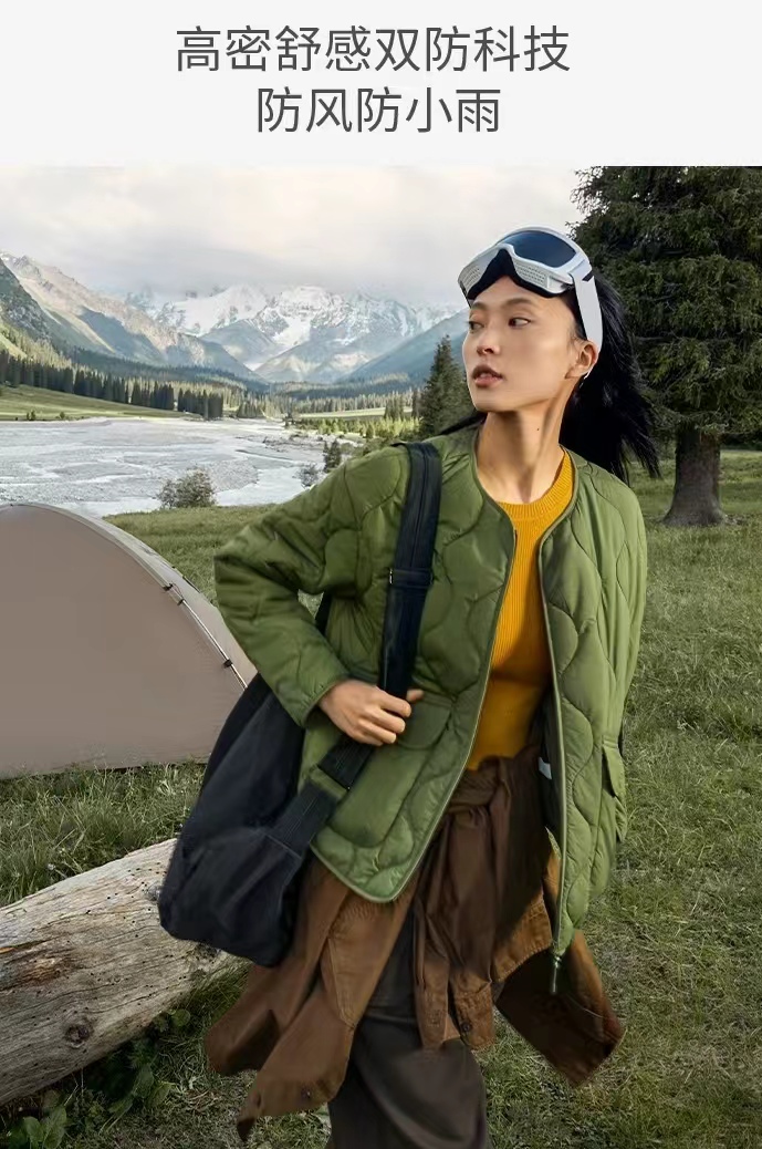 蕉家同款2.0气绒显瘦棉服,外层面料是防泼水的,可抵挡小雨防风,防寒,耐油污,方便打理填充iech Clo+气绒2.0材质,升级三层保暖结构更轻薄更保暖,同时具备遇湿保暖、抗湿冷、可机洗性能,内搭外穿叠穿都狠ok。