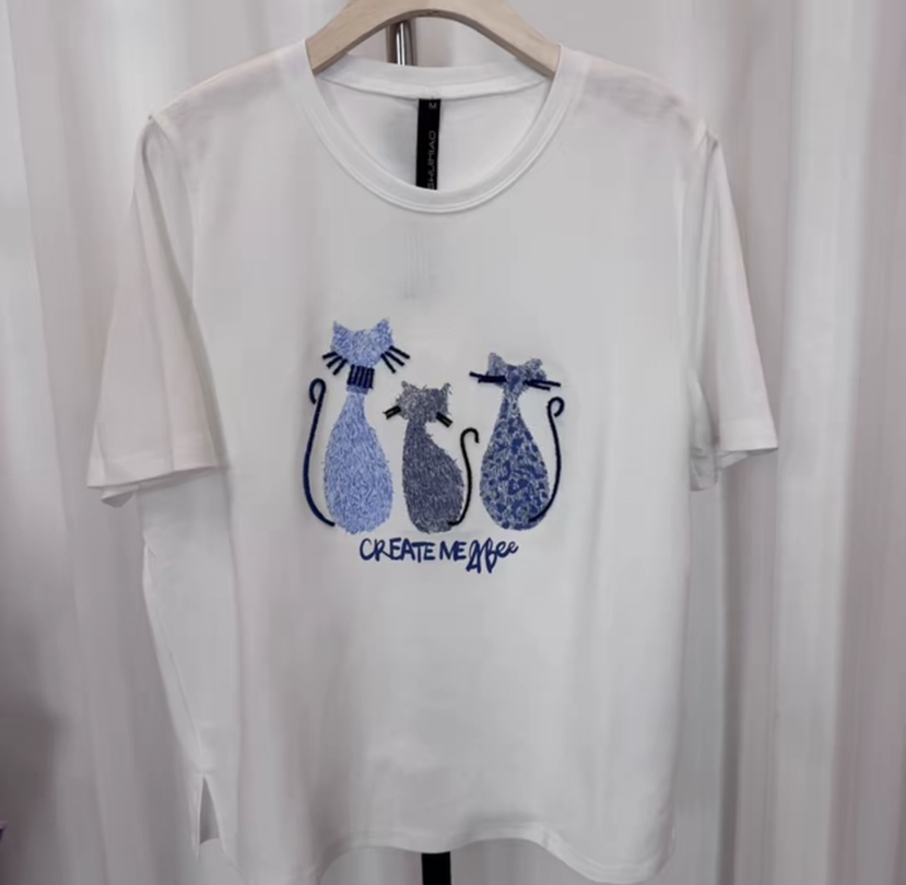 【面料超好,不变形】水淼2026春猫咪印花休闲百搭T恤2487