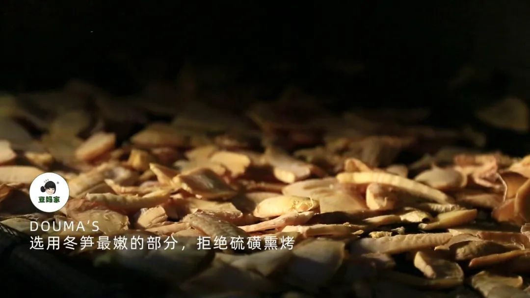 而整个烘烤过程由于农户的烘烤技艺不同,呈现不同品质的玉兰片。豆妈家玉兰片全程原生态烤制,拒绝硫磺烘烤,经历三天两夜数百次翻转,以保证每片笋片干燥,保持鲜嫩口感,无任何添加。