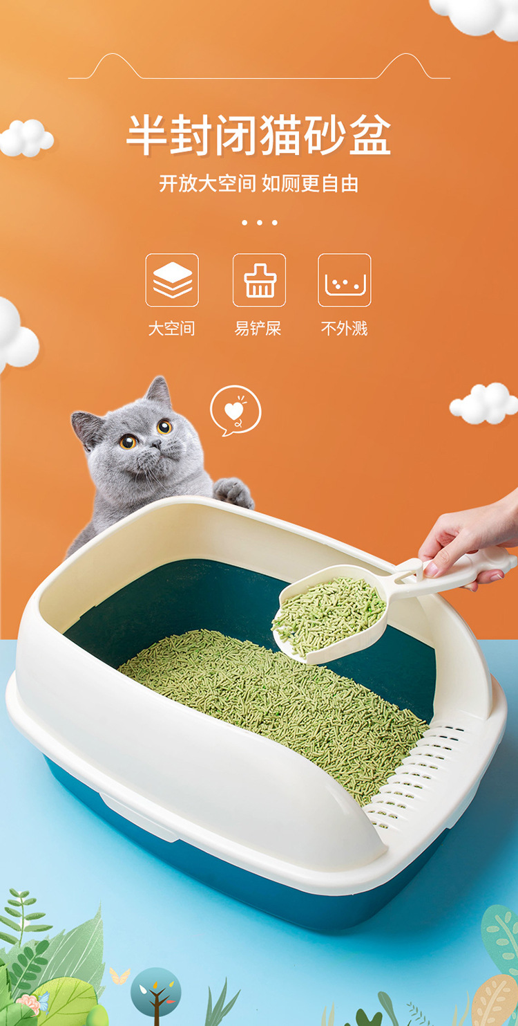 【猫砂盆】大号猫咪厕所猫沙盆防外溅半封闭式幼猫除臭猫砂铲猫咪用品