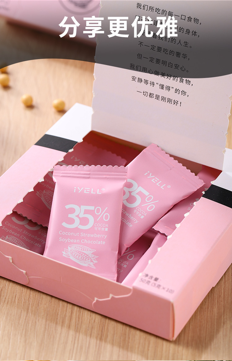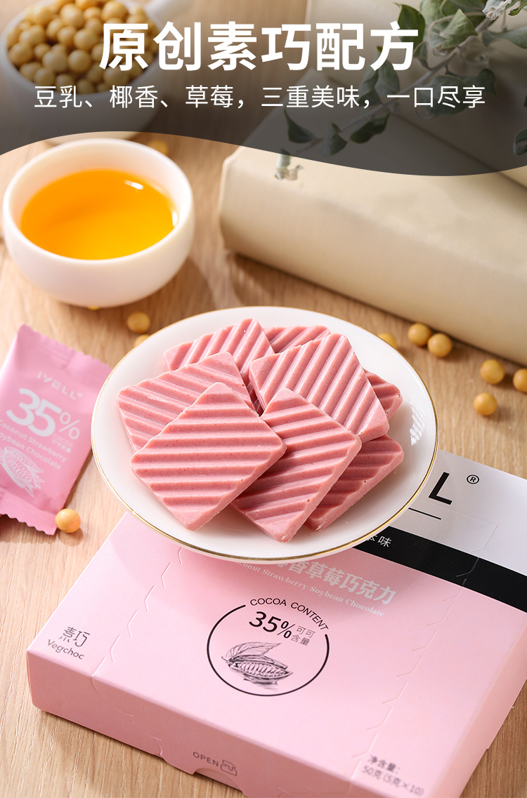 iYELL 爱吆 素巧豆乳椰香草莓巧克力 不添加蔗糖纯素巧克力