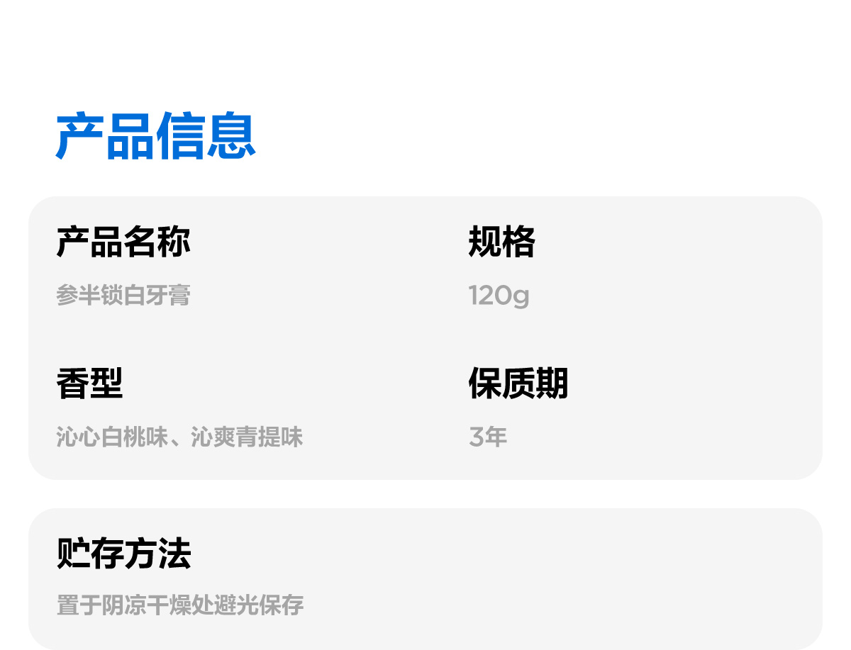 【新品上线】参半锁白沁心白桃/青提牙膏(120g)