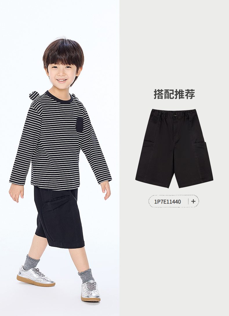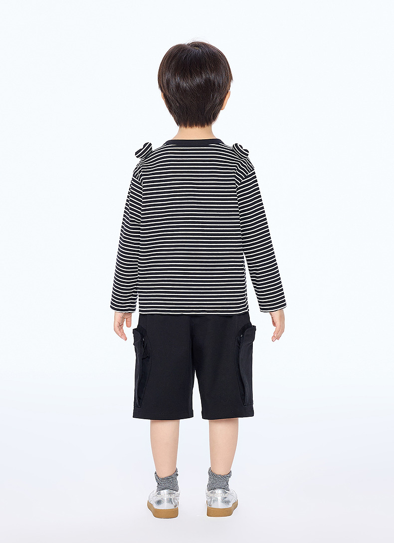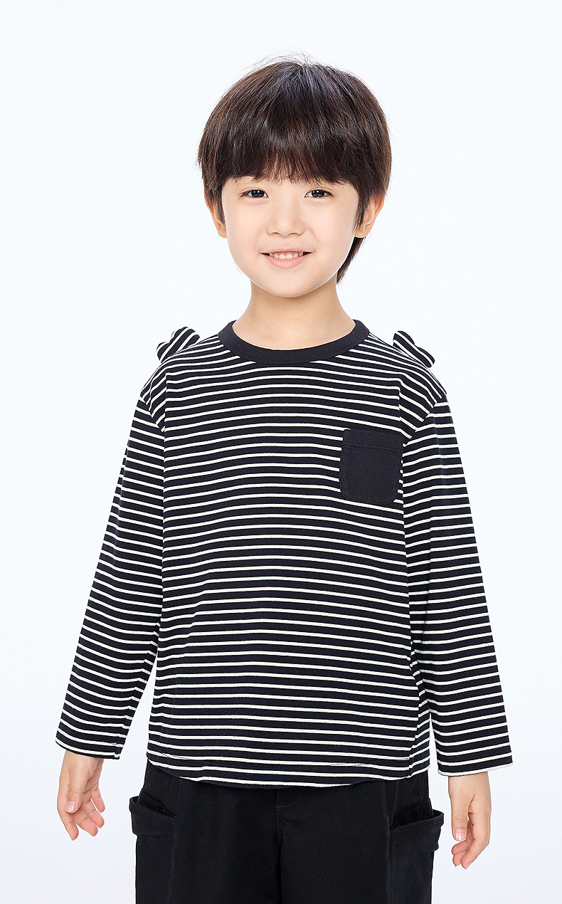 【春上新】8楼 江南布衣童装 装饰爱心宽松条纹长袖T恤 男女童 25秋季新款 吊牌价:335元 活动价:302元