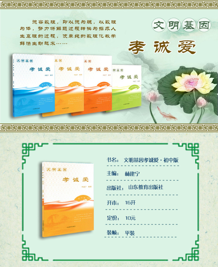 文明基因 孝诚爱 初中版 中华传统美德 传统文化 2016年向全国青少年推荐百种优秀出版物