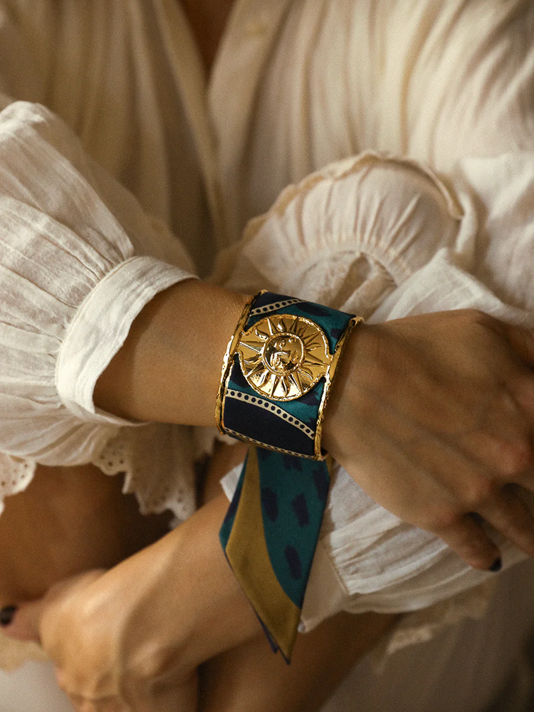 北京仓|AN-NEE-SOLEIL-棕绿色 夏帕诺瓦 4cm 丝巾手镯[法国设计师]