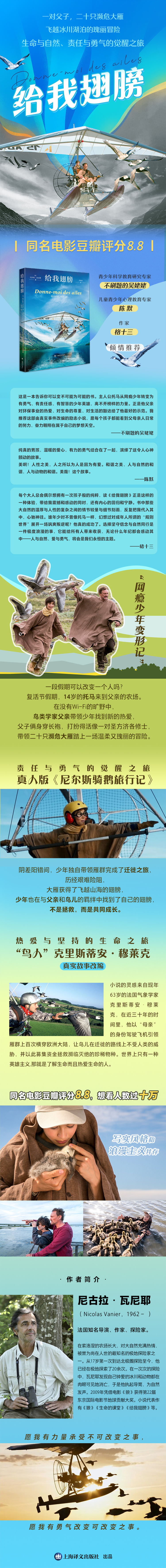 阴差阳错之下,十四岁的少年像《尼尔斯骑鹅旅行记》中的小男孩一样,独自带着雁群踏上了迁徙之旅,飞越北极圈,在赋予大雁翅膀的同时,也找到了自己的翅膀。