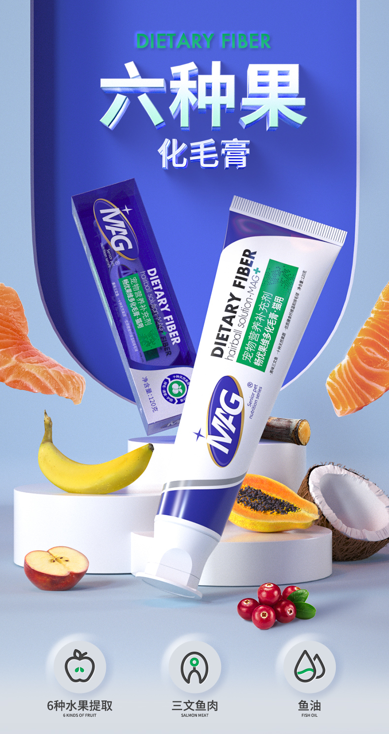 【U+系列】MAG六种果化毛膏120g-6种水果提取纤维猫咪专用化毛膏猫用去毛膏排毛球