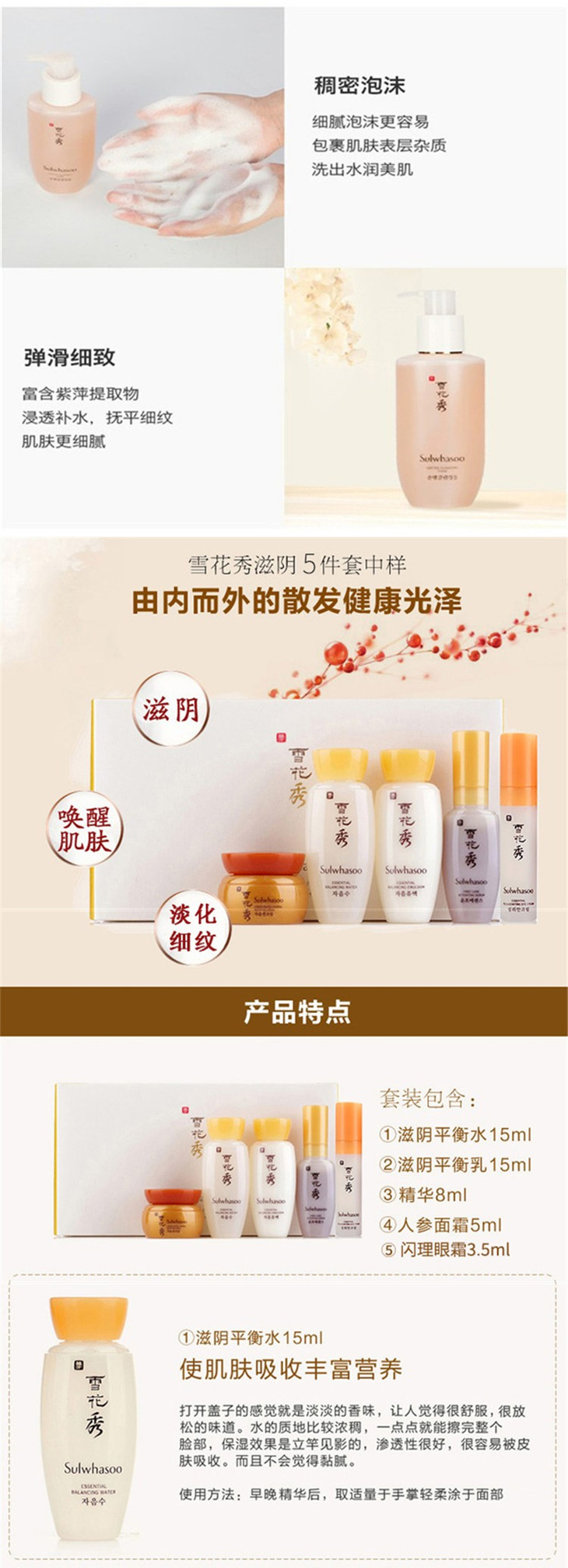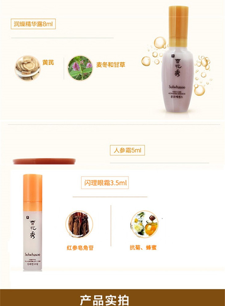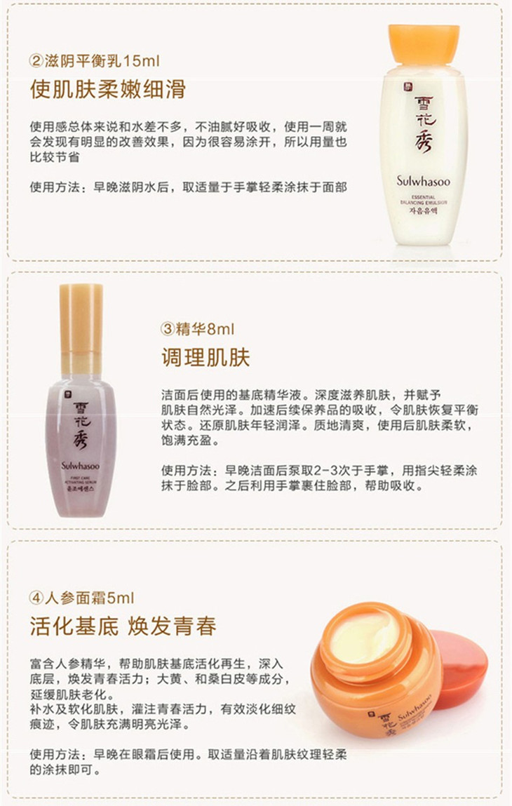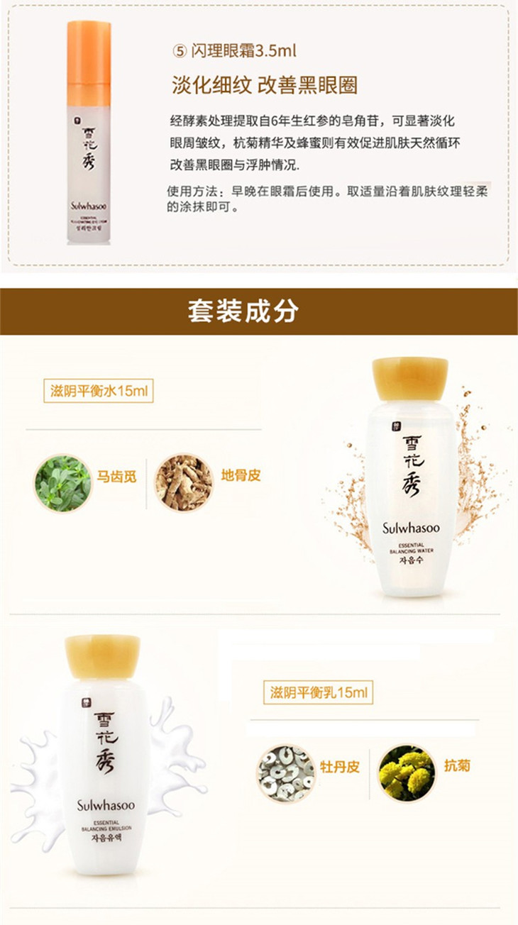 雪花秀护肤套装化妆水乳液润燥精华补水滋阴四件套小样