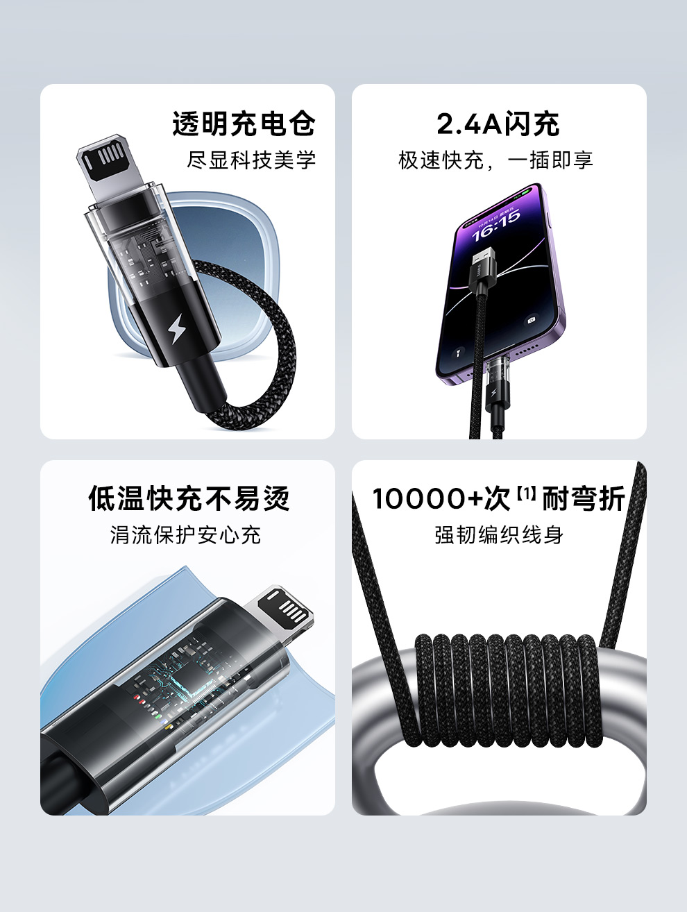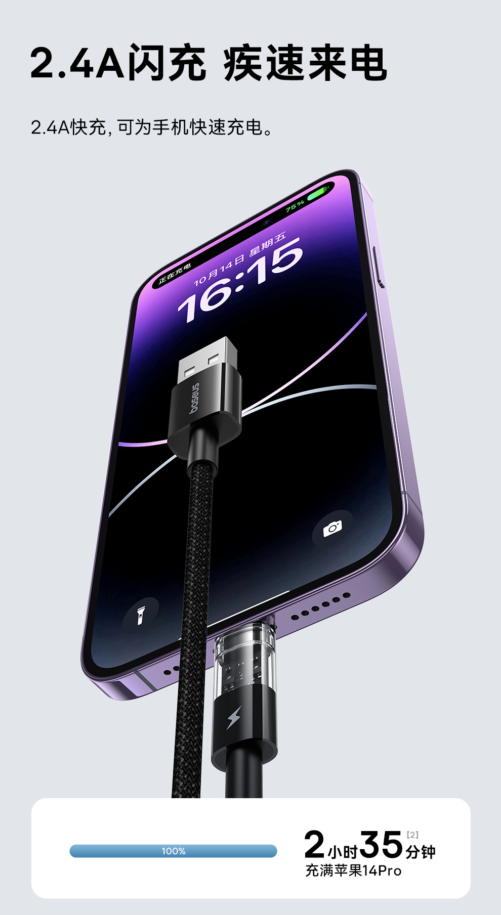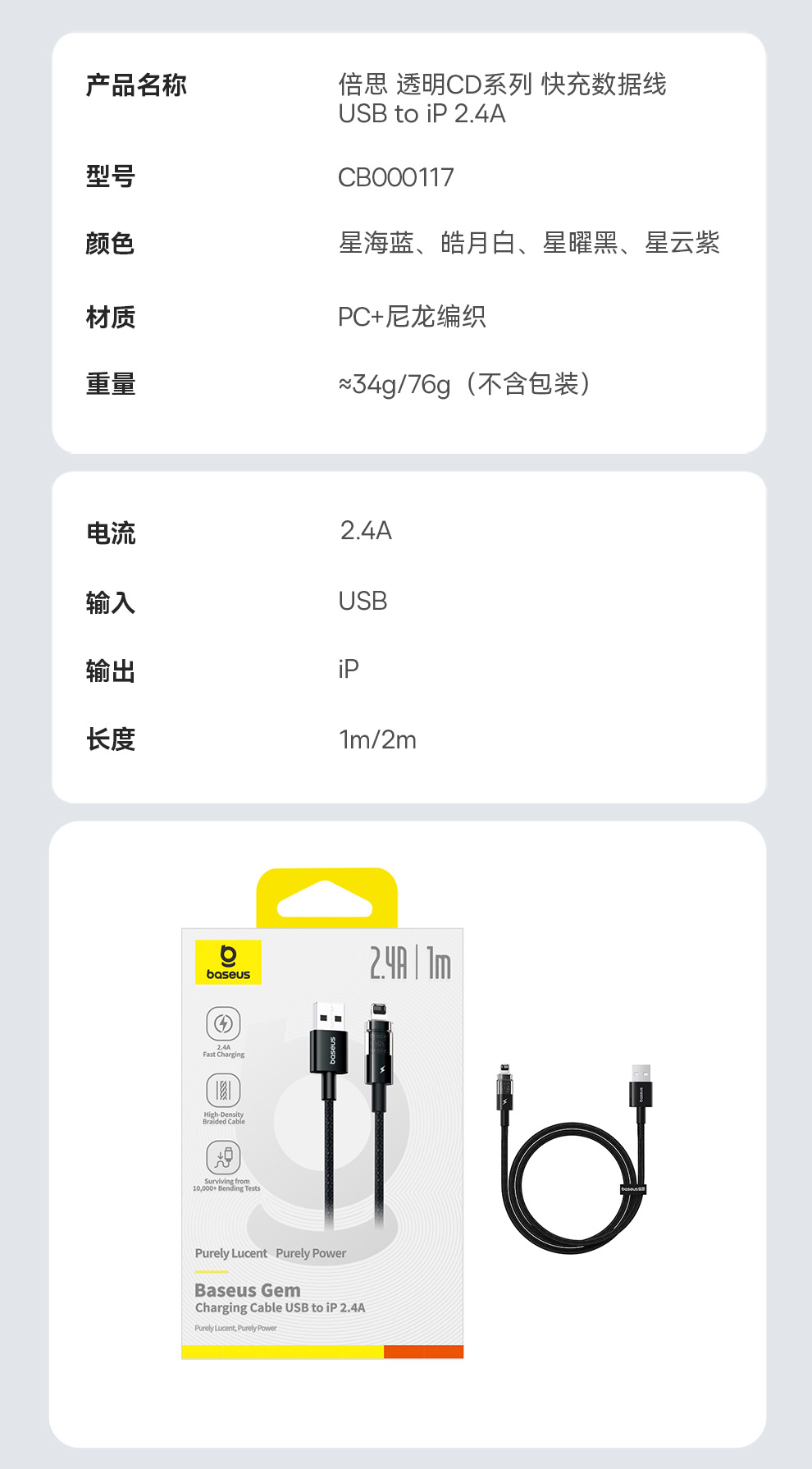 倍思 透明CD系列 快充数据线 USB to iP 2.4A