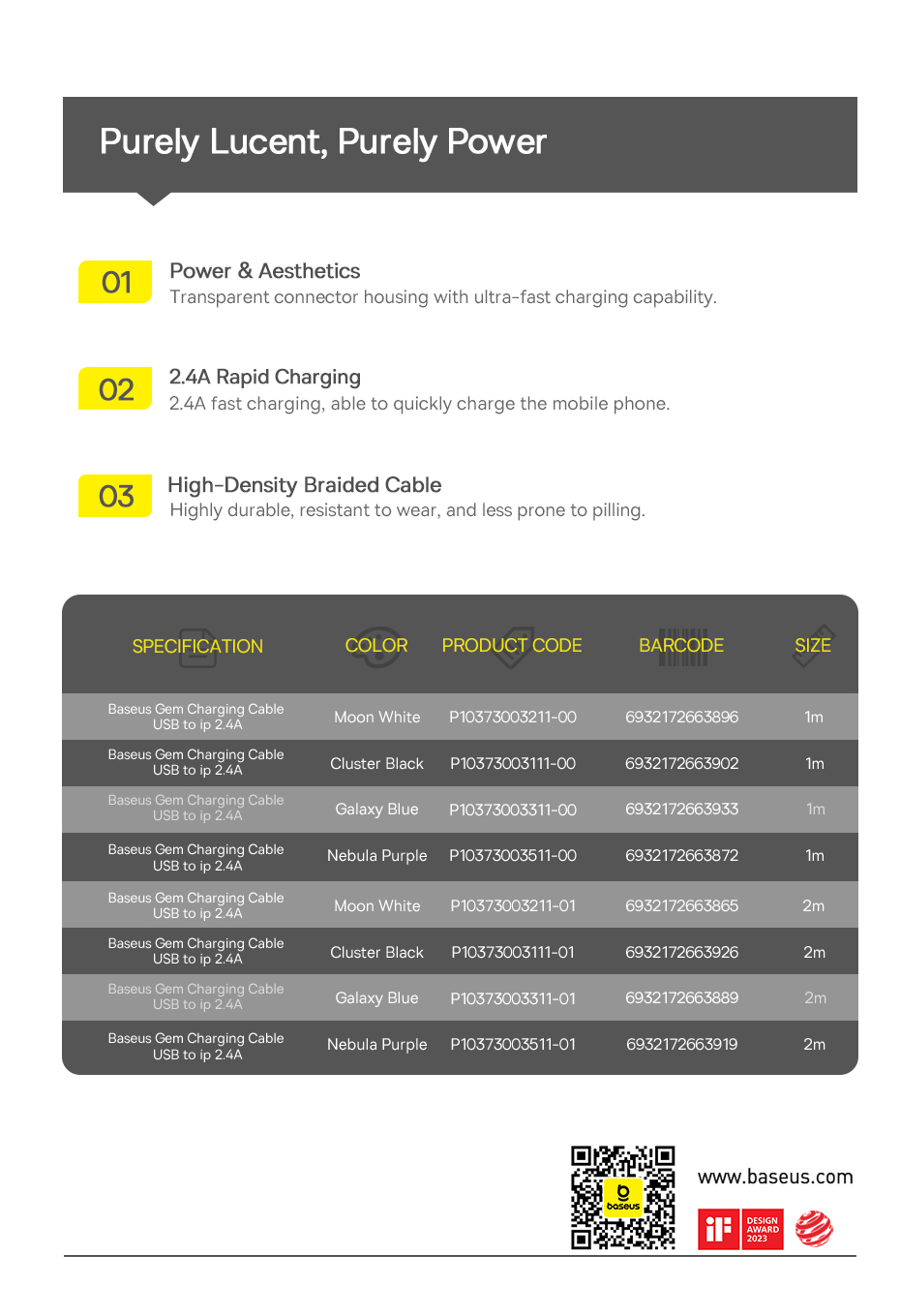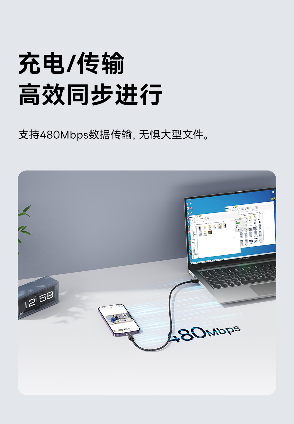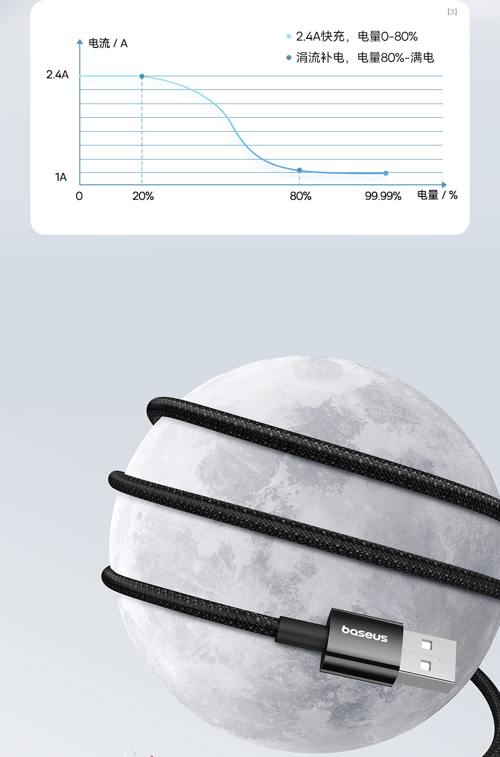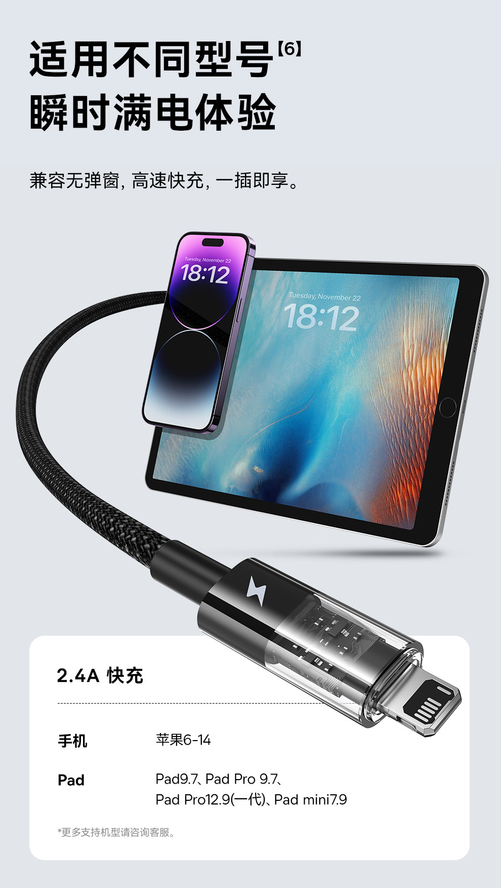 倍思 透明CD系列 快充数据线 USB to iP 2.4A