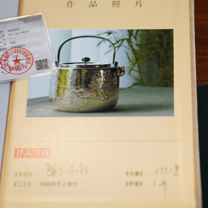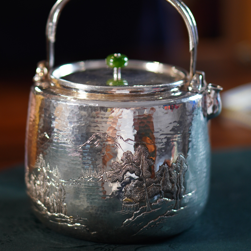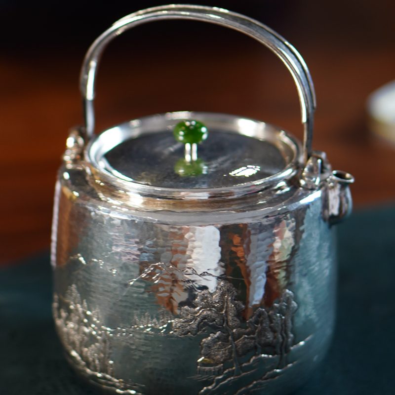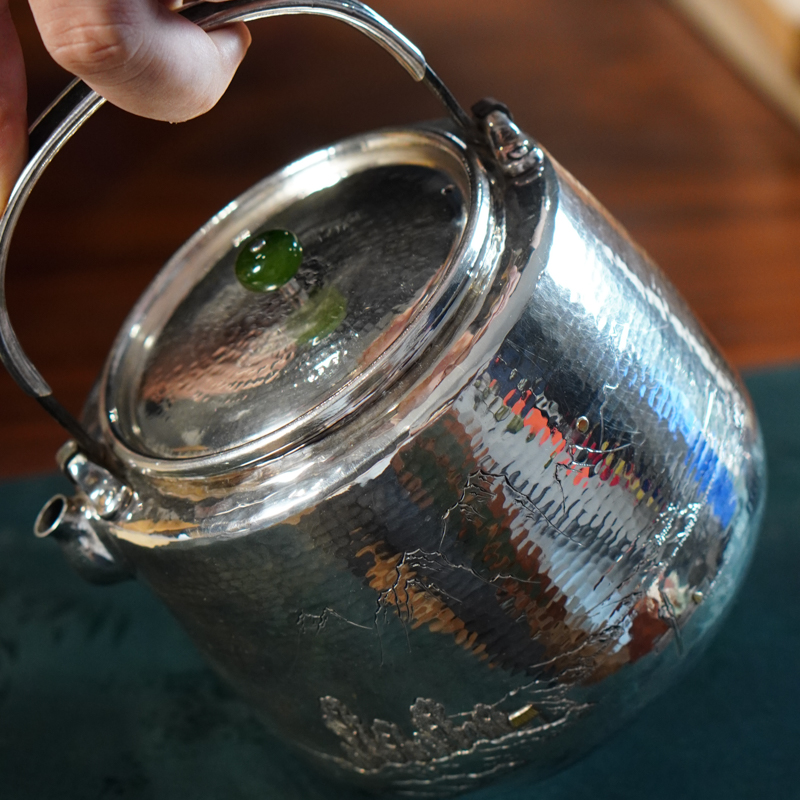杨兴录1L高筒锤纹提梁银壶 约577g左右