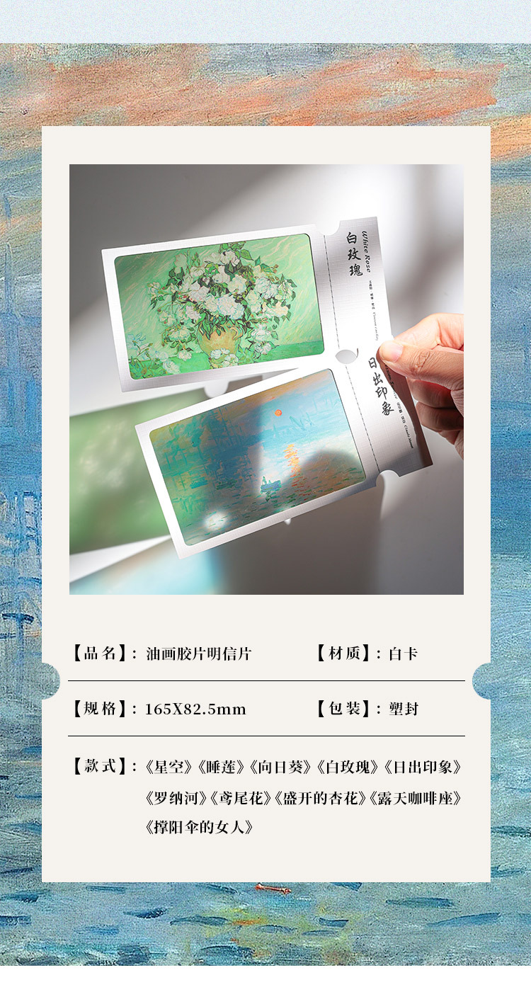 【可以投影的名画胶片书签】梵高莫奈透光油画明信片书签