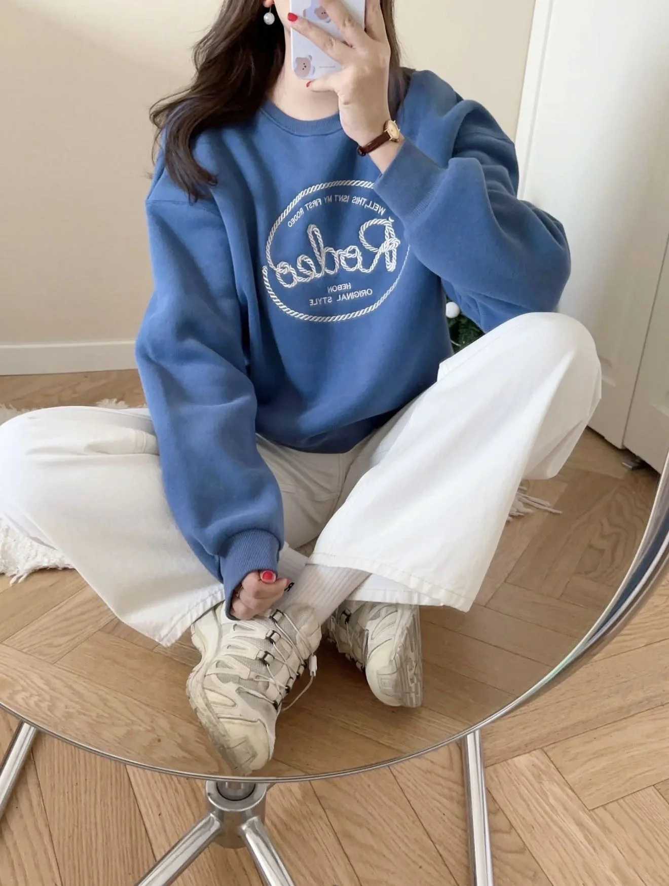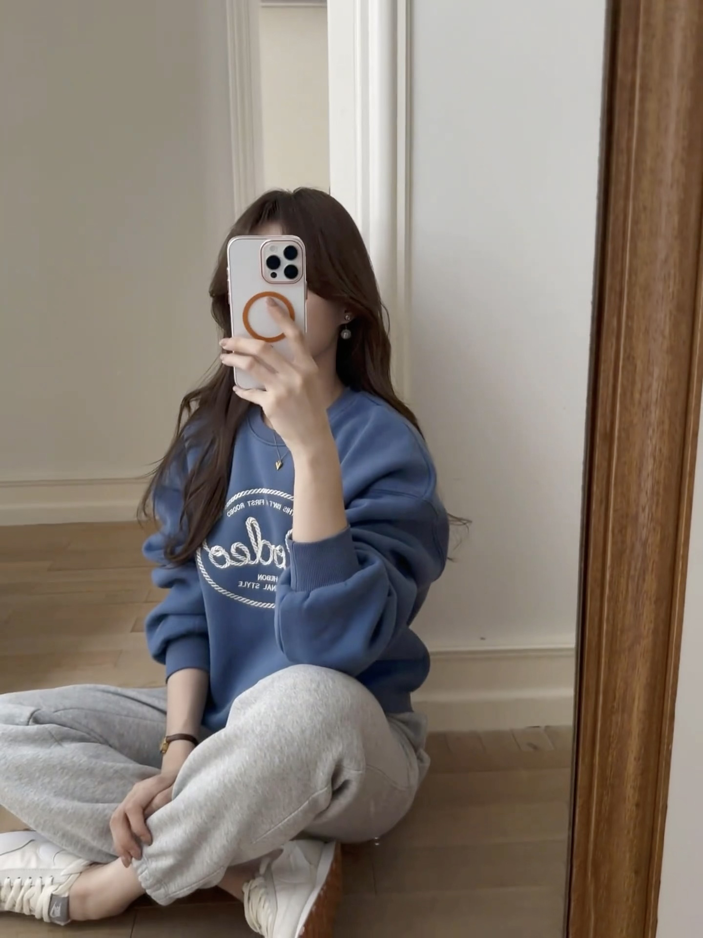 复古牛仔感北欧蓝卫衣,这显白度是开了挂的~一整个被这件卫衣的“蓝”拿捏住!